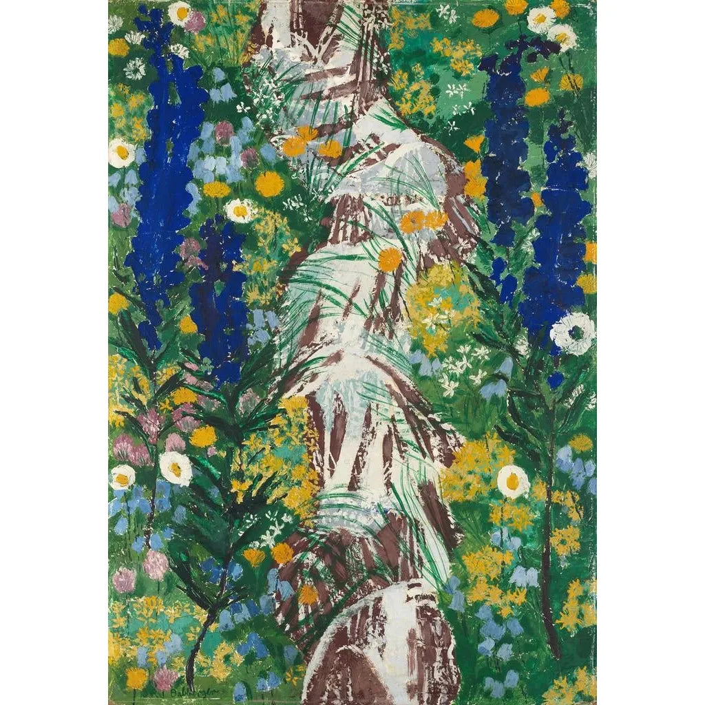 Kunstdruk | Bloemen aan de rand van de beek - August Babberger