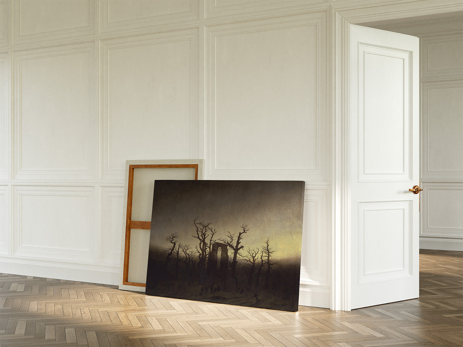 De reprodukkel kwaliteit garandeert een getrouwe weergave van de nuances en contrasten van het origineel, waardoor de volledige rijkdom van Friedrichs werk kan worden gewaardeerd. Gemakkelijk te integreren in verschillende decoratiestijlen, past deze doek zowel bij een minimalistisch modern interieur als bij een meer klassieke inrichting.
