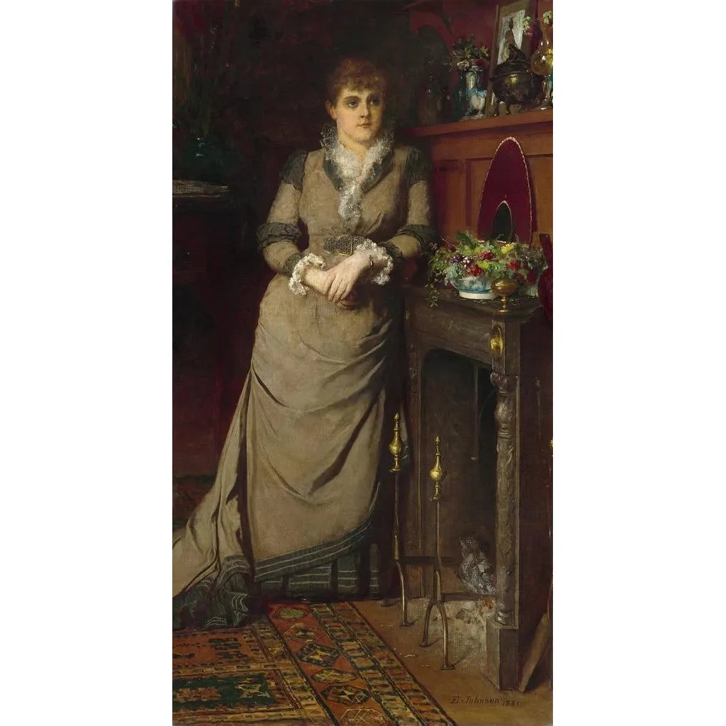 Eastman Johnson, actief in de 19e eeuw, wordt erkend als een van de pioniers van het Amerikaanse realisme. Zijn werk onderscheidt zich door een bijzondere aandacht voor details en een vermogen om de ziel van zijn onderwerpen vast te leggen. Geïnspireerd door Europese kunststromingen, heeft Johnson een unieke stijl ontwikkeld die realisme en gevoeligheid combineert. "Harriet Hubbard Ayer" past binnen een periode waarin kunst een middel werd om menselijke emoties uit te drukken, en waarin portretten van vrouwen een prominente plaats innemen. Johnson heeft met zijn werken bijgedragen aan het herdefiniëren van de vrouwelijke representatie in de Amerikaanse kunst.