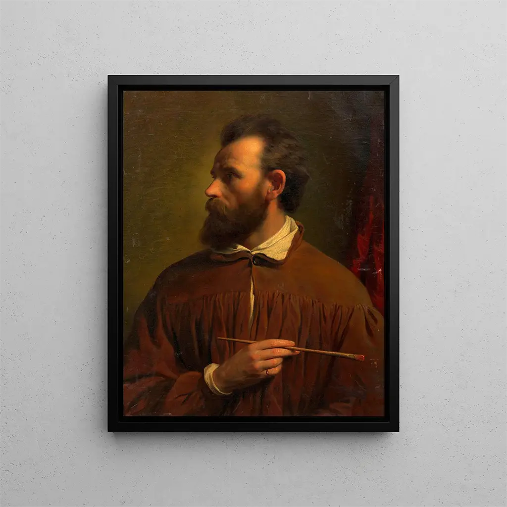 Le style d'Anton Ebert se caractérise par une maîtrise exceptionnelle du portrait, où chaque détail est soigneusement pensé pour transmettre une émotion ou une idée. Dans "Zelfportret van Friedrich von Amerling", Ebert utilise des techniques de clair-obscur qui donnent une dimension presque sculpturale à son sujet. La texture de la peau, le jeu de lumière sur les traits du visage, et la composition harmonieuse créent une atmosphère à la fois intime et solennelle. Ce tableau se démarque par sa capacité à capturer non seulement l'apparence physique, mais aussi l'essence même de l'artiste. Le choix des couleurs, à la fois vives et subtiles, souligne la complexité de la personnalité de Friedrich von Amerling, tout en invitant le spectateur à contempler la dualité de l'être humain, entre vulnérabilité et force.