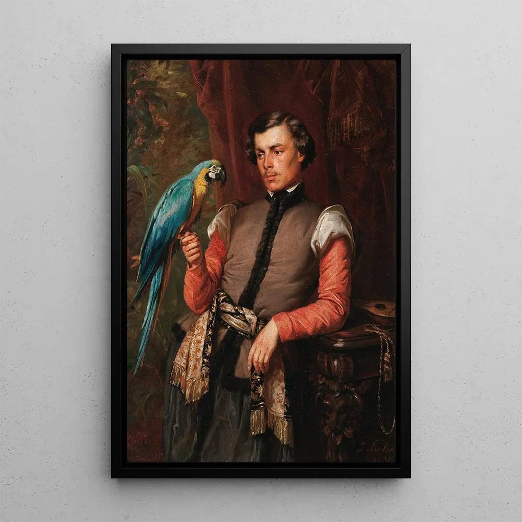 Kunstdruk | Edelman met een papegaai - Józef Simmler
