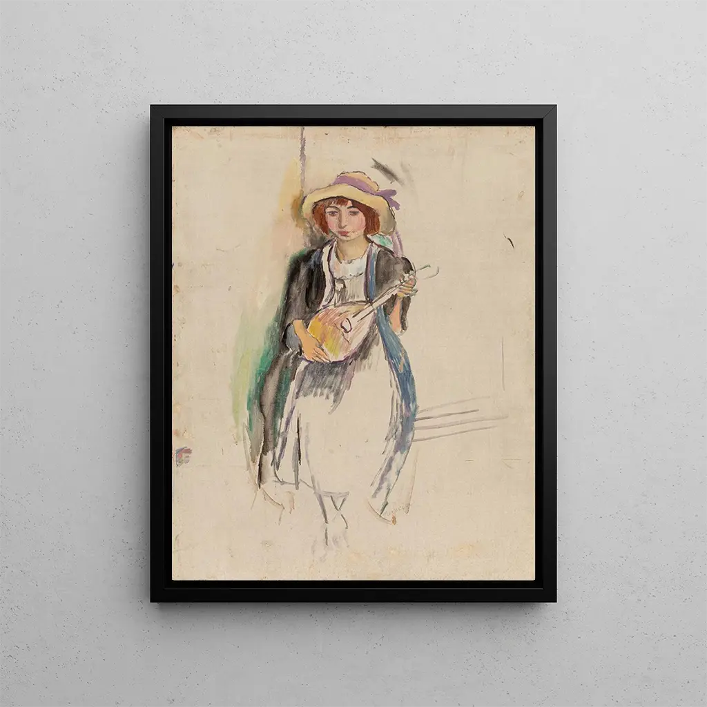 Jules Pascin, een Franse-Bulgaarse kunstenaar van het begin van de 20e eeuw, staat bekend om zijn portretten van vrouwen en scènes uit het nachtleven. In zijn kunstdruk "Meisje met de mandoline" beeldt hij een jonge vrouw af die op de mandoline speelt, haar gezicht uitdrukkend zowel sereniteit als melancholie. Pascin gebruikt zachte kleuren en vloeiende lijnen om een intieme sfeer te creëren die uitnodigt tot contemplatie. Deze kunstdruk weerspiegelt niet alleen de esthetiek van die tijd, maar ook de emotie en psychologische diepgang van zijn onderwerpen. In een eigentijdse setting kan een kunstdruk zoals deze een ruimte verrijken, met een artistiek accent en een persoonlijk verhaal. Ontdek de kunstdruk van dit werk op Artem Legrand om een poëtische dimensie aan uw interieur toe te voegen.