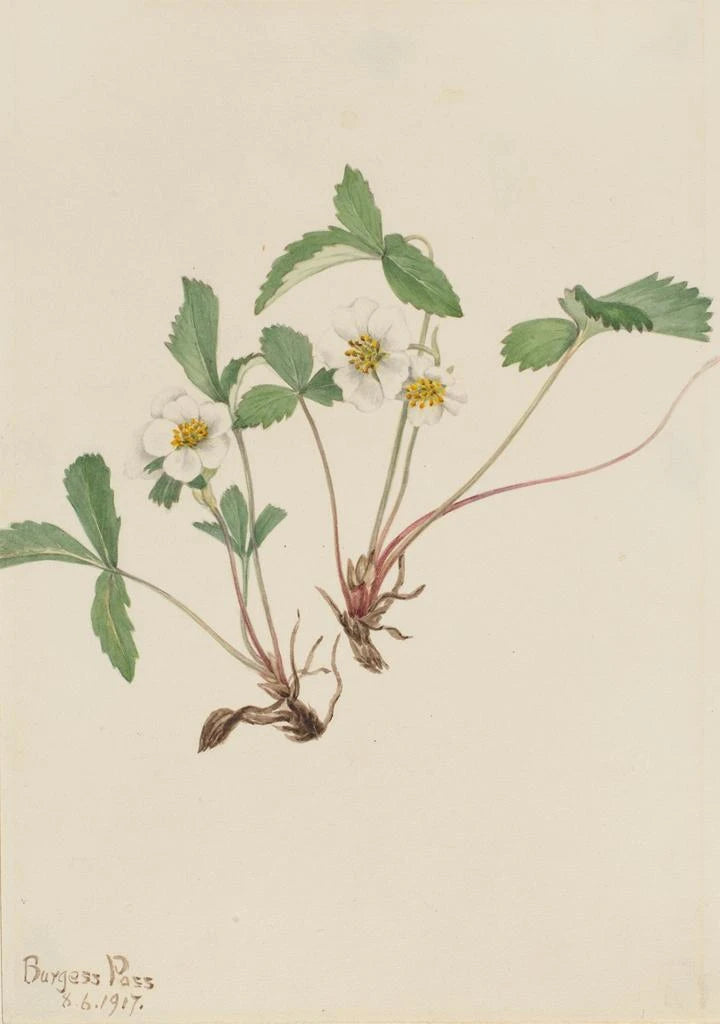Kunstdruk | Bleek aardbeienbed Fragaria glauca - Mary Vaux Walcott