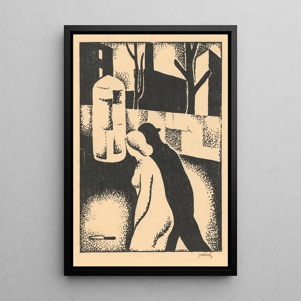 Op de terugweg : een ode aan melancholie "Op de terugweg" van Mikuláš Galanda roept een innerlijke reis op vol nostalgie. De warme, aardse tinten, gecombineerd met lichte accenten, creëren een intieme en bedachtzame sfeer. De zorgvuldig samengestelde compositie leidt de blik door een landschap dat zowel vertrouwd als ver weg lijkt. De fijne details, uitgevoerd met een beheersde techniek, onthullen de diepte van menselijke emoties, waardoor dit doek een ware uitnodiging is tot reflectie en introspectie. Mikuláš Galanda : een pionier van de moderne Slowaakse kunst Mikuláš Galanda, geboren in 1895, wordt beschouwd als een van de pioniers van de moderne kunst in Slowakije. Zijn carrière, gekenmerkt door een onophoudelijke zoektocht naar nieuwe vormen van expressie, werd beïnvloed door de Europese kunststromingen van zijn tijd. Galanda wist traditie en innovatie te combineren, door Slowaakse folkloristische elementen te integreren in een moderne taal. Zijn werk, rijk en gevarieerd, getuigt van een unieke gevoeligheid en een diep begrip van de menselijke natuur, wat hem een prominente plaats geeft in de geschiedenis van de Slowaakse kunst. Een decoratieve kunstdruk met vele voordelen De kunstdruk van "Op de terugweg" is een slimme decoratieve keuze voor wie een vleugje emotie in hun ruimte wil brengen. Of het nu in een woonkamer, kantoor of slaapkamer is, dit doek zal de aandacht trekken en gesprekken uitlokken. De afdrukkwaliteit garandeert een indrukwekkende trouw aan het originele werk, terwijl het esthetische aspect je decoratie verrijkt. Door dit schilderij in je interieur te integreren, creëer je een warme en bedachtzame sfeer, ideaal voor contemplatie en ontsnapping.