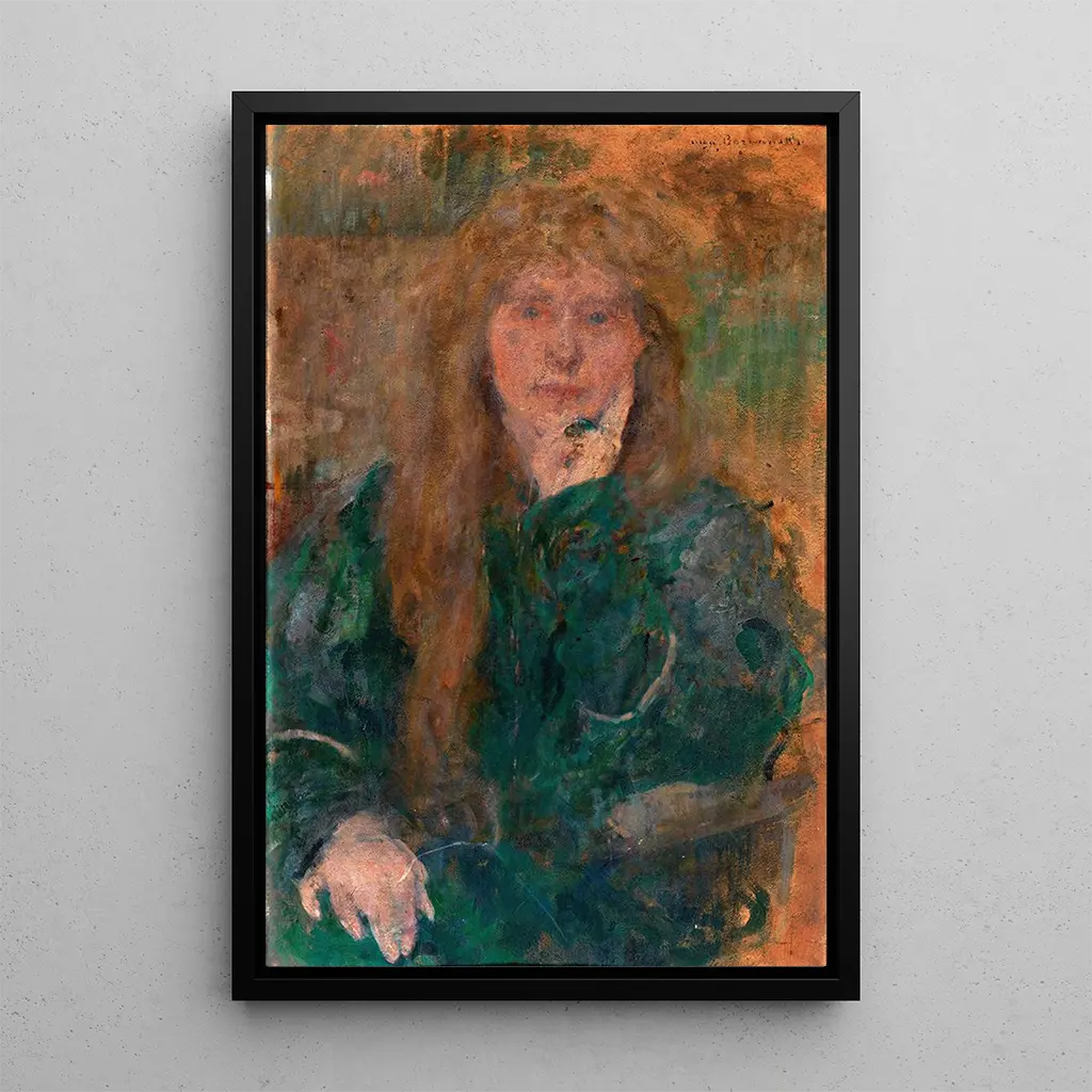 In "Natalie Barney" schetst Olga Boznańska met finesse de complexe persoonlijkheid van deze schrijfster en mecenas, emblematisch voor het Belle Époque. Het doek onthult een palet van zachte kleuren, waarin pastelkleuren zich verweven om een intieme en bedachtzame sfeer te creëren. De blik van Barney, vastgelegd met opmerkelijke precisie, lijkt door te dringen tot de toeschouwer en nodigt uit tot diepe contemplatie. Elke penseelstreek getuigt van de bewondering van Boznańska voor haar onderwerp, terwijl ze een moderne en gedurfde visie op de vrouw uit die tijd biedt.