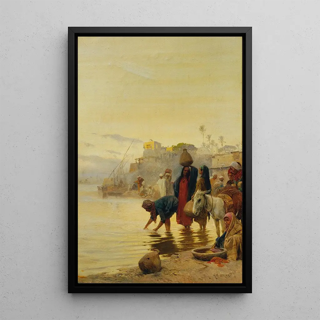 De kunstdruk van "Lavandières aan de Nijl" is een ideaal decoratief stuk om een vleugje elegantie en sereniteit aan uw interieur toe te voegen. Of het nu in een woonkamer, kantoor of slaapkamer is, dit kunstwerk trekt de aandacht en stimuleert gesprekken. De kwaliteit van de afdruk en de trouw aan de originele kleuren garanderen een esthetisch resultaat dat elke ruimte verfraait. Door voor deze doek te kiezen, kiest u voor een kunstwerk dat niet alleen uw decor verrijkt, maar ook een verhaal en cultuur oproept, waardoor uw omgeving verandert in een plek van contemplatie en schoonheid.