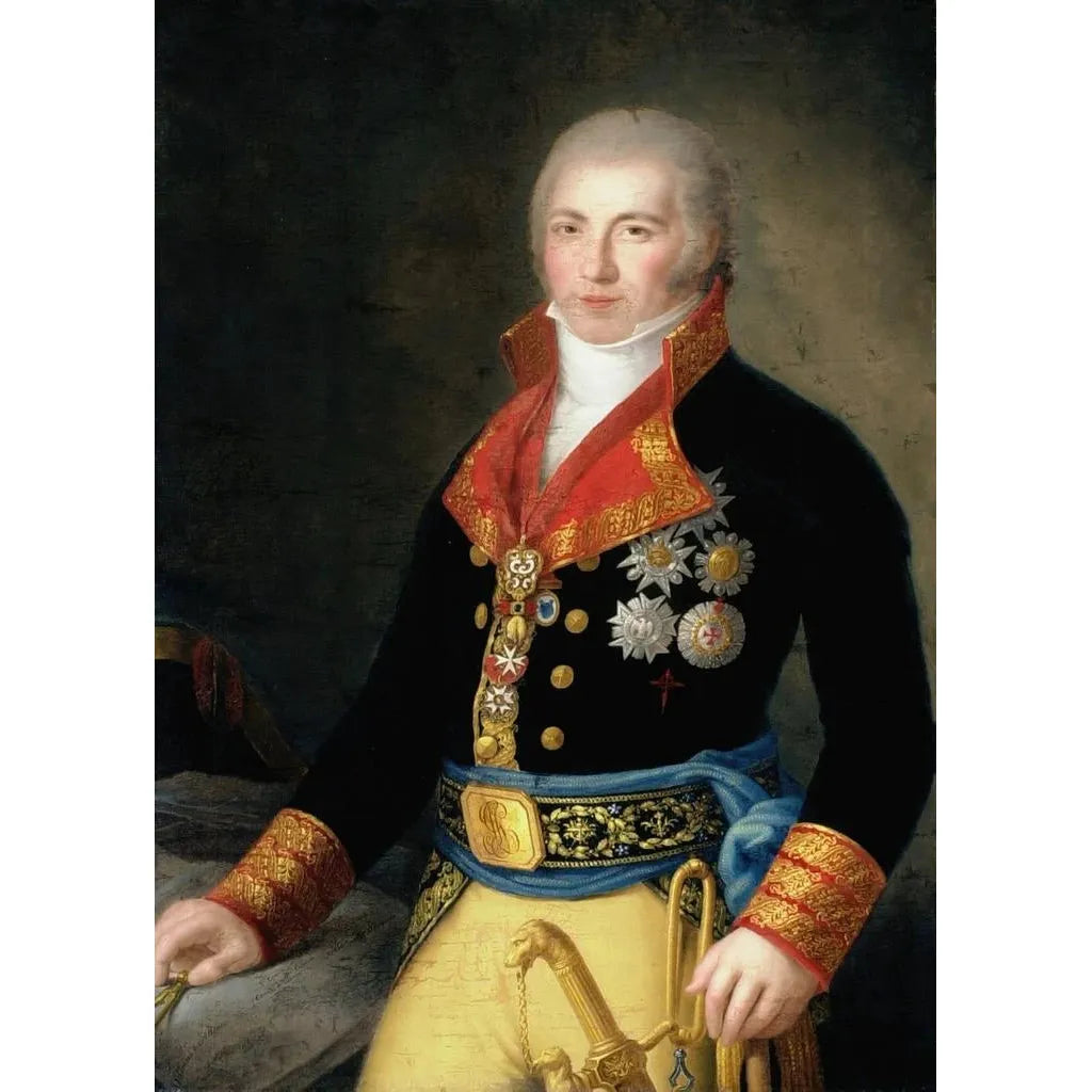 Agustín Esteve y Marqués, actief aan het einde van de achttiende eeuw en het begin van de negentiende eeuw, staat bekend om zijn kunstdrukken die realisme en elegantie combineren. Opgeleid in de Spaanse artistieke context van die tijd, werd hij beïnvloed door meesters zoals Goya, terwijl hij zijn eigen onderscheidende stijl ontwikkelde. Esteve y Marqués slaagde erin niet alleen de fysieke verschijning van zijn onderwerpen vast te leggen, maar ook hun karakter en sociale status. Bij het schilderen van Manuel Godoy heeft hij niet alleen een invloedrijk man geïmmortaliseerd, maar ook bijgedragen aan het collectieve geheugen van een tijdperk dat gekenmerkt werd door politieke en sociale omwentelingen.