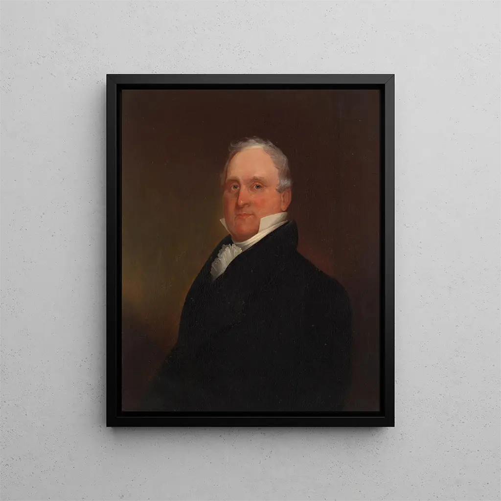 L'honorable James Lanman is een schitterend voorbeeld van het academische portret, waar de fijnheid van de details en de diepte van de kleuren samenkomen om een beeld te creëren dat zowel realistisch als evocatief is. Chester Harding, meester in portretkunst, toont een uitzonderlijk vakmanschap in het weergeven van texturen, of het nu gaat om de plooien van de kleding of de uitdrukking van het gezicht van zijn model. Dit schilderij onderscheidt zich door het subtiele gebruik van licht, dat de trekken van Lanman benadrukt en hem een bijna tastbare aura geeft. Elk element van de compositie, van accessoires tot achtergronden, is zorgvuldig gekozen om de visuele vertelling te verrijken, en biedt zo een venster op de sociale identiteit van het onderwerp. De voorstelling van Lanman, als man van eer en onderscheid, wordt versterkt door een blik die zowel contemplatief als boeiend lijkt, en de toeschouwer uitnodigt om na te denken over zijn gedachten en ambities.