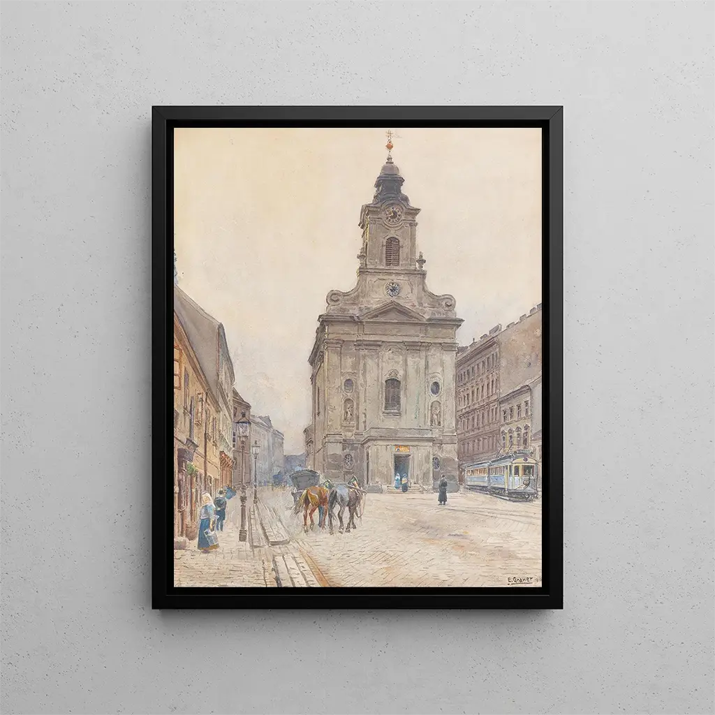 De zogenaamd Rauchfangkehrerkirche in Wenen, een iconisch werk van Ernst Graner, dompelt ons onder in een wereld waar architectuur en schilderkunst op een zeldzame delicate wijze samenkomen. Deze voorstelling van een kerk, zowel echt als dromerig, roept een reis door tijd en ruimte op, waarbij elk detail lijkt te vertellen. Het licht speelt een belangrijke rol door de contouren van de gebouwen te verlichten en tegelijkertijd een mystieke sfeer te creëren. Bij het bekijken van dit werk wordt de kijker uitgenodigd om de subtiliteiten van de barokke architectuur te verkennen en zich af te vragen welke emoties het oproept. De kunst van Graner overstijgt de eenvoudige voorstelling en biedt een meeslepende ervaring, die ons meeneemt naar het hart van Wenen, een stad rijk aan geschiedenis en cultuur.