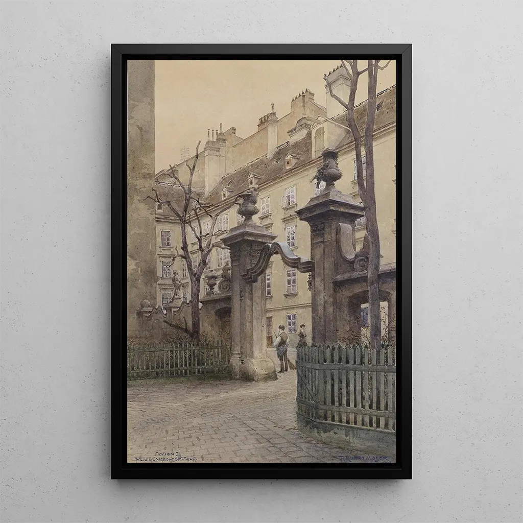Heiligenkreuzerhof à Vienne : een reis door de architecturale tijd Het kunstdruk "Heiligenkreuzerhof à Vienne" van Richard Moser dompelt ons onder in een sfeer van sereniteit en elegantie. De compositie, zowel harmonieus als gestructureerd, benadrukt nuances van beige en blauw die de zachtheid van zonnige dagen oproepen. De architectonische details worden zorgvuldig weergegeven, wat de beheersing van de aquareltechniek onthult. Het kunstwerk nodigt uit tot contemplatie, tot het verkennen van de schaduwen en het licht dat danst op de oude muren, en creëert zo een bijna meditatieve sfeer. Richard Moser : een getuige van de Weense architectuur Richard Moser is een kunstenaar wiens werk zich richt op architectuur en stedelijk landschap, en de essentie van Wenen in het begin van de 20e eeuw vastlegt. Geïnspireerd door de Art Nouveau-beweging, heeft hij moderne elementen weten te integreren terwijl hij de architectonische tradities respecteert. Zijn carrière, gekenmerkt door een bijzondere aandacht voor details en licht, heeft hem tot een essentieel vertegenwoordiger van de Weense kunst gemaakt. Via zijn werken biedt Moser een venster op een tijdperk waarin architectuur synoniem was met schoonheid en functionaliteit. Een decoratief kunstdruk met meerdere voordelen De kunstdruk "Heiligenkreuzerhof à Vienne" is een ideaal decoratief stuk om je interieur te verrijken, of het nu in een woonkamer, kantoor of slaapkamer is. De afdrukkwaliteit en de trouw aan het originele kunstwerk garanderen een onmiskenbare esthetische aantrekkingskracht. Door dit kunstdruk in je inrichting te integreren, breng je een vleugje elegantie en cultuur aan, terwijl je de bewondering van je gasten wekt. Dit kunstdruk is veel meer dan een eenvoudige decoratie; het is een uitnodiging om de geschiedenis en schoonheid van de Weense architectuur te ontdekken.