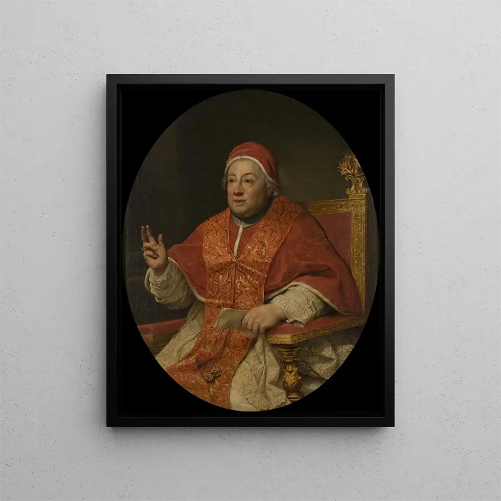 In het rijke en complexe panorama van de kunstgeschiedenis onderscheiden sommige werken zich door hun vermogen om niet alleen de essentie van een onderwerp vast te leggen, maar ook de geest van een tijdperk. "De paus Clemens XIII" van Anton Raphaël Mengs is een van die iconische kunstdrukken die de eenvoudige portretkunst overstijgt en een ware artistieke verklaring wordt. Dit schilderij, geschilderd in de 18e eeuw, roept zowel de grootsheid van de katholieke kerk als de fijnheid van de rococostijl op, terwijl het de persoonlijkheid van een paus onthult wiens bewind werd gekenmerkt door zowel spirituele als politieke uitdagingen.