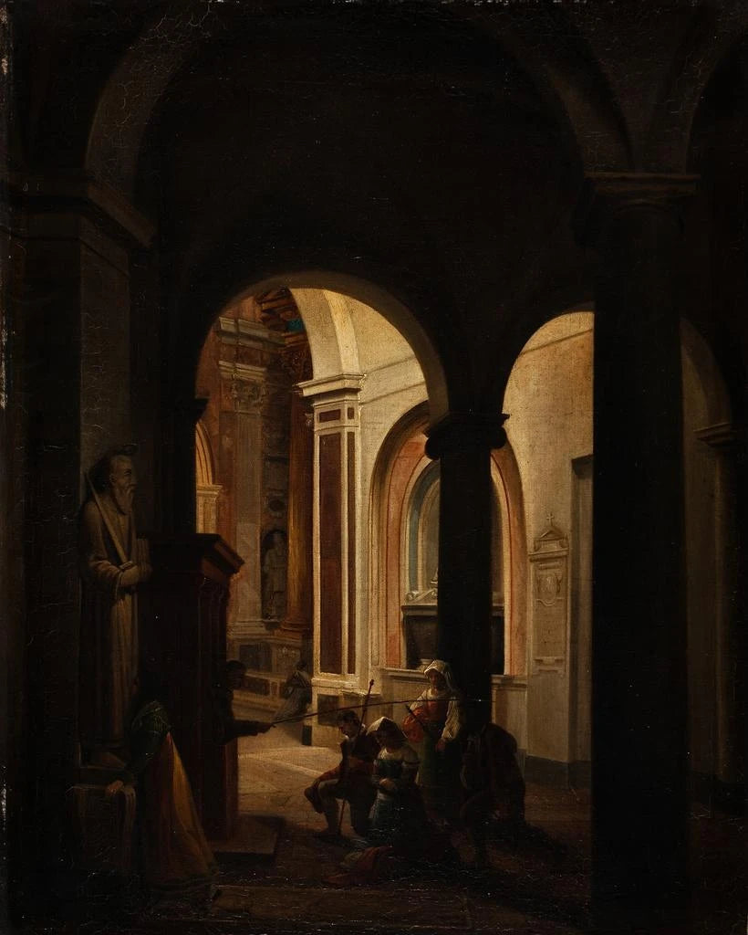 Kunstdruk | Penitenten in een Romeinse kerk - Francesco Diofebi