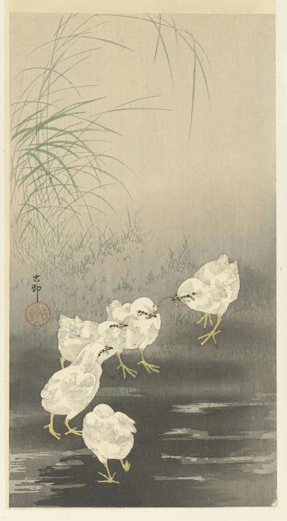 Ohara Koson, actief tijdens de Taisho-periode (1912-1926), wordt erkend als een van de grootste kunstenaars van de Japanse ukiyo-e. Geïnspireerd door de tradities van ukiyo-e, wist hij moderniteit en cultureel erfgoed te combineren, en creëerde hij werken die de vergankelijke schoonheid van de natuur vastleggen. Zijn weergaven van fauna en flora zijn doordrenkt met een unieke gevoeligheid, wat getuigt van zijn respect voor de natuurlijke wereld. Koson werd ook beïnvloed door westerse kunststromingen, waarbij hij elementen van compositie en kleur integreerde die zijn eigen stijl verrijken. Zijn werk blijft kunstenaars en kunstliefhebbers over de hele wereld inspireren en fascineren.