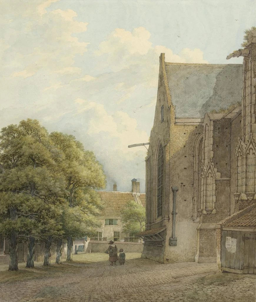 Daniël Kerkhoff, Nederlandse schilder uit de 19e eeuw, wordt vaak geassocieerd met de realistische beweging die zijn tijd markeerde. Zijn werk past binnen een artistieke traditie waarin nauwkeurige observatie van de natuur en gebouwen centraal staat. Kerkhoff werd beïnvloed door zijn tijdgenoten, maar ontwikkelde een eigen stijl die hem uniek maakt. Zijn passie voor architectuur en respect voor details maken hem tot een bijzondere kunstenaar, die de schoonheid van de door hem afgebeelde locaties eert. Via zijn werken nodigt hij ons uit om vertrouwde landschappen vanuit een nieuw perspectief te herontdekken, en moedigt hij ons aan de rijkdom van ons cultureel en architectonisch erfgoed te waarderen. Zijn invloed op de Nederlandse kunst is onmiskenbaar, en "Rhenenkerk" is een voorbeeld hiervan.