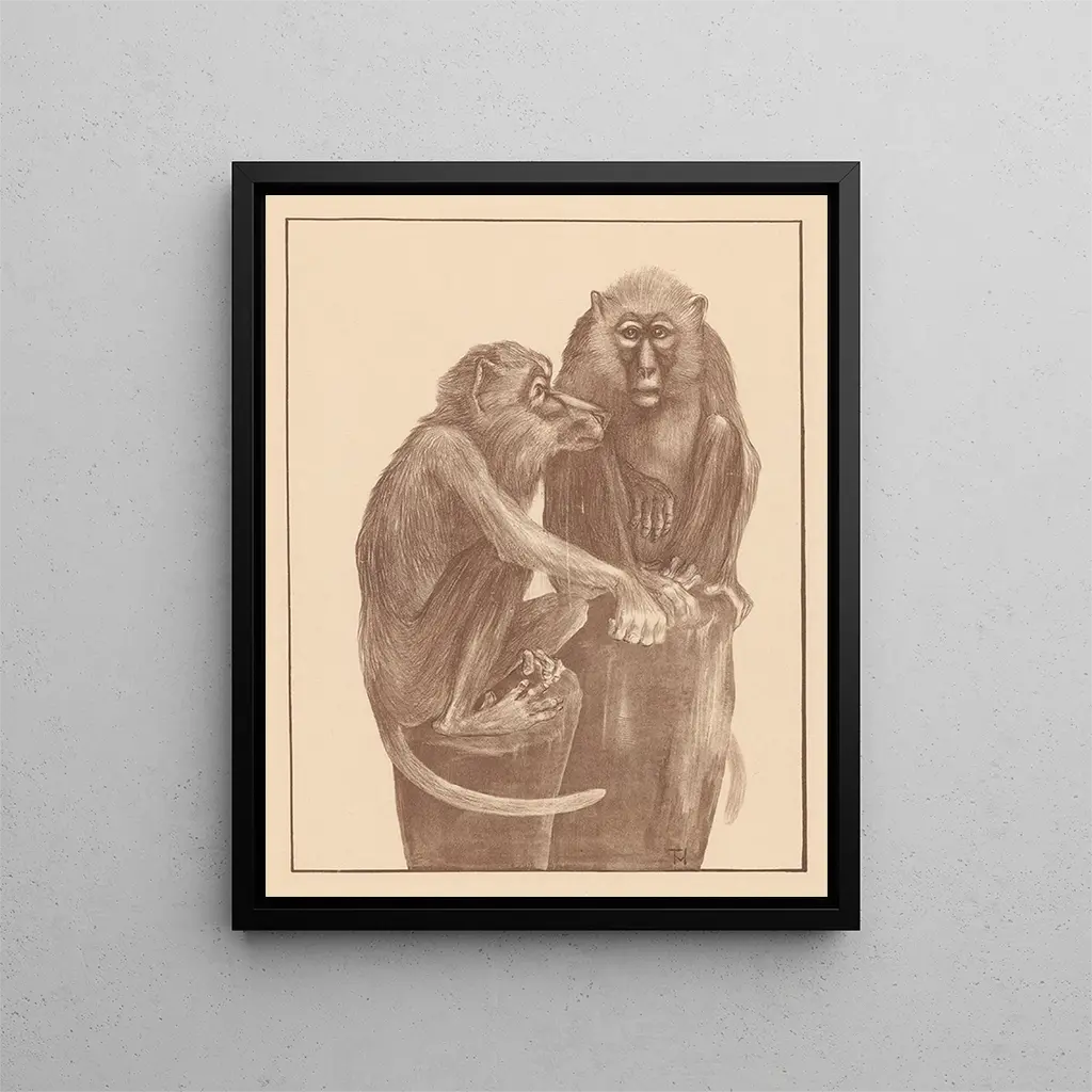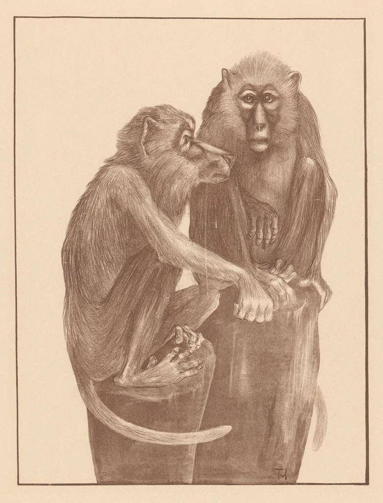 Deux singes chiens sur des souches d'arbres - Theo van Hoytema