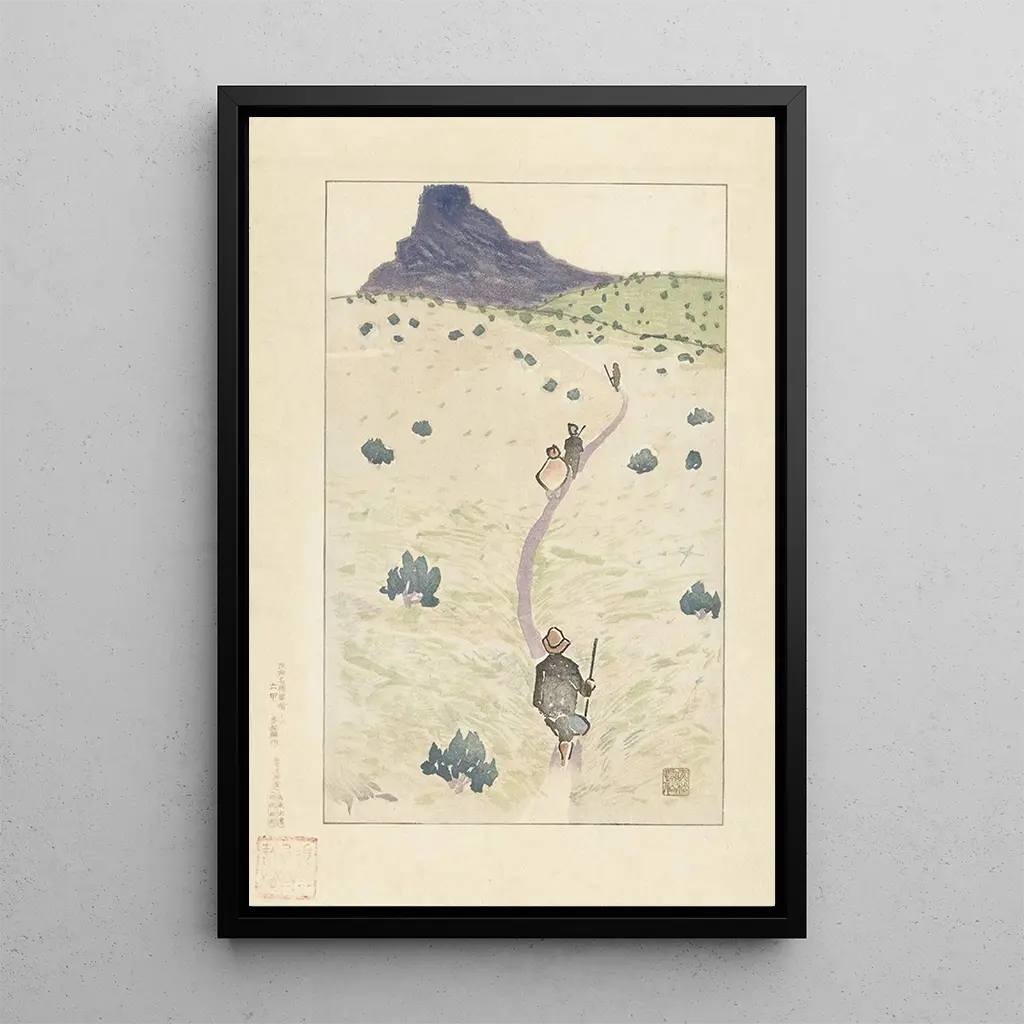 Le mont Rokko : une célébration de la nature majestueuse "Le mont Rokko" d'Akamatsu Rinsaku est une œuvre qui capture la grandeur et la beauté des paysages japonais. Les teintes vibrantes de bleu et de vert, associées à des touches de blanc, évoquent la fraîcheur des cimes montagneuses. La technique de l'artiste, qui combine des éléments de peinture traditionnelle avec une approche moderne, permet de ressentir la profondeur et la texture des paysages. Ce tableau transporte le spectateur dans un voyage visuel à travers la nature, invitant à l'évasion et à l'émerveillement face à la magnificence des montagnes. Akamatsu Rinsaku : un pionnier de l'art paysager japonais Akamatsu Rinsaku, figure emblématique de l'art japonais du XXe siècle, a su se démarquer par sa capacité à représenter la nature avec une sensibilité unique. Influencé par le mouvement Nihonga, il a intégré des éléments contemporains dans ses œuvres, tout en restant fidèle aux traditions japonaises. "Le mont Rokko" témoigne de son habileté à capturer la lumière et l'atmosphère des paysages, faisant de lui un artiste respecté et admiré. Son travail a non seulement enrichi l'art japonais, mais a également ouvert la voie à de nouvelles interprétations de la nature. Une acquisition décorative aux multiples atouts La reproduction "Le mont Rokko" est un ajout parfait à votre décoration intérieure, que ce soit dans un espace de vie, un bureau ou une chambre. Sa qualité d'impression garantit une fidélité remarquable aux couleurs et aux détails de l'œuvre originale. En choisissant ce tableau, vous apportez une touche de nature et de sérénité à votre environnement, créant ainsi une atmosphère apaisante. Son attrait esthétique et son message de respect envers la nature en font un choix idéal pour ceux qui souhaitent enrichir leur espace de vie avec une œuvre d'art significative.