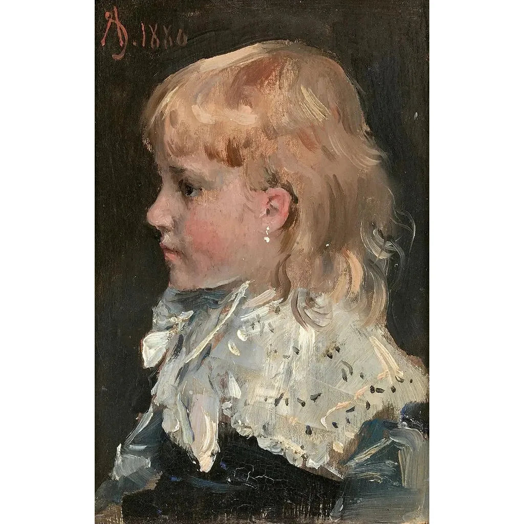 Alfred Stevens, actif au XIXe siècle, est reconnu pour son talent à immortaliser les femmes de son époque, souvent issues de la bourgeoisie. Influencé par le mouvement réaliste et l'impressionnisme naissant, il parvient à allier technique classique et modernité. Son œuvre se distingue par une attention particulière aux détails et à la lumière, ce qui lui confère une place unique dans l'histoire de l'art. Stevens a su capter l'esprit de son temps, offrant une vision à la fois intime et universelle de la femme. Le "Portrait d'Alice Gamby" s'inscrit dans cette lignée, témoignant de son habileté à transformer des moments ordinaires en chefs-d'œuvre.