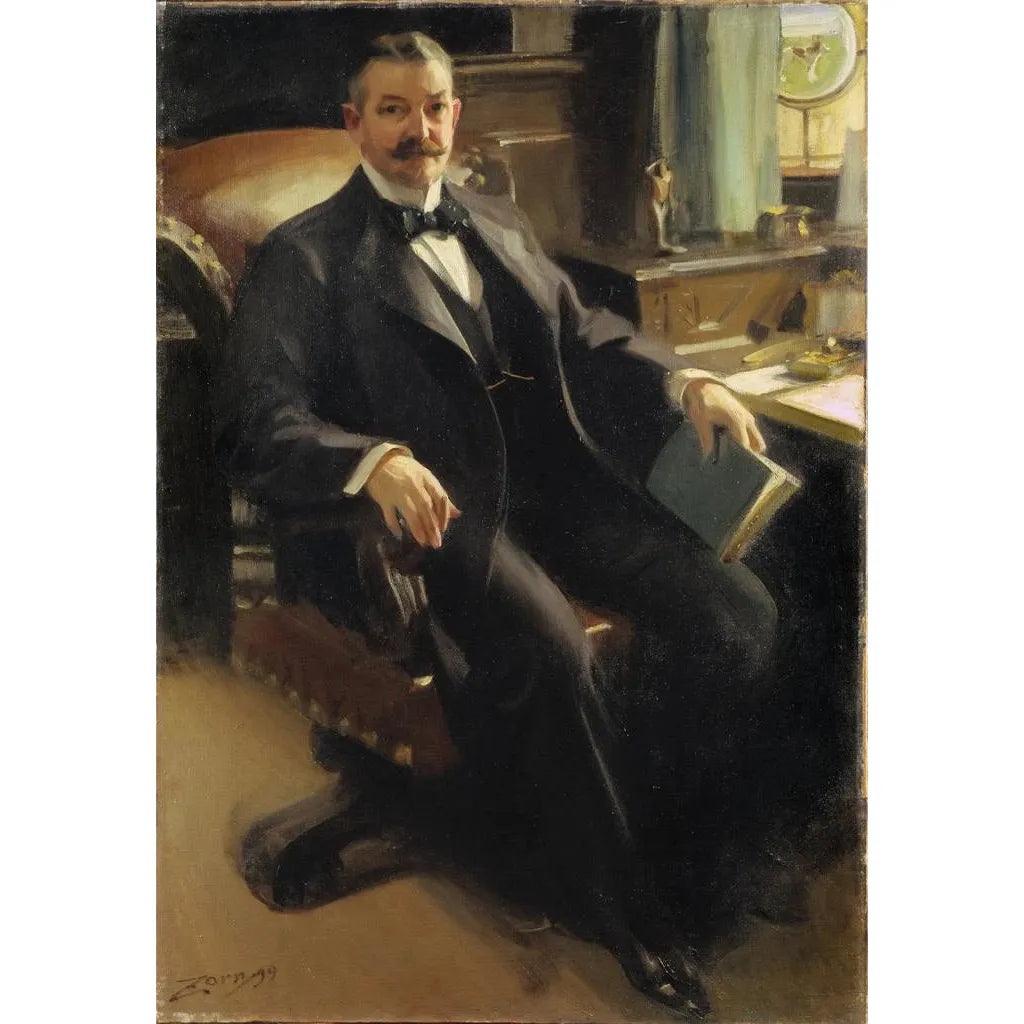 Dans cette œuvre emblématique, Anders Zorn dépeint M. Henry Clay Pierce avec une finesse remarquable. Le portrait, à la fois réaliste et expressif, met en avant la stature imposante de l'homme d'affaires américain, tout en jouant sur les contrastes de lumière et d'ombre. Les détails du costume, ainsi que l'arrière-plan subtilement flou, soulignent l'importance du sujet tout en créant une atmosphère de dignité et de respect. Zorn, avec sa technique magistrale, réussit à capturer non seulement l'apparence physique, mais aussi l'essence même de l'individu, rendant ce tableau vivant et intemporel.