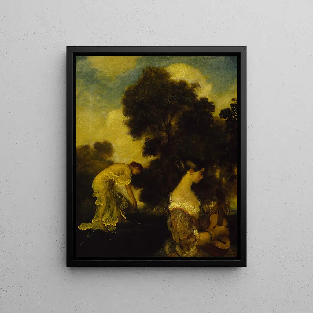 Le style d'Arthur Bowen Davies est marqué par une sensibilité unique qui se manifeste dans "Vêpres". L'artiste utilise une palette de couleurs douces et harmonieuses, créant un équilibre entre lumière et ombre qui confère à l'œuvre une profondeur saisissante. Les silhouettes des figures humaines, souvent présentes dans ses compositions, sont stylisées de manière à évoquer plus qu'elles ne décrivent. Dans "Vêpres", ces formes semblent danser au gré des éléments naturels, comme si elles étaient en communion avec le monde qui les entoure. La composition, à la fois dynamique et apaisante, nous conduit à une réflexion sur l'harmonie entre l'homme et la nature. Chaque détail, chaque nuance, est soigneusement pensé pour susciter une émotion, pour faire résonner en nous une mélodie silencieuse.
