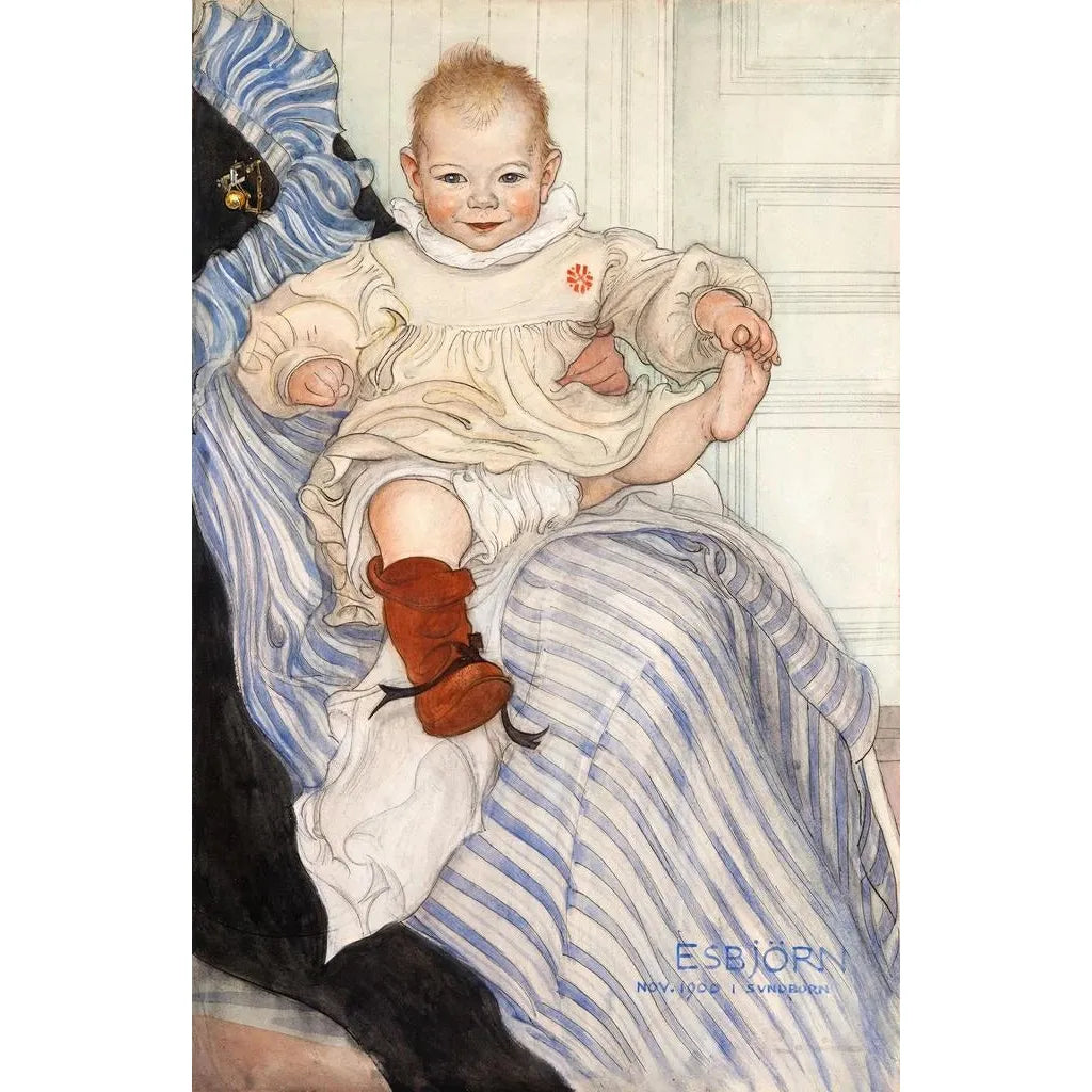 Esbjörn : un portrait d’innocence et de douceur Dans cette reproduction d'Esbjörn, Carl Larsson capture l'essence même de l'enfance à travers un portrait délicat et touchant. La composition met en avant un jeune garçon, assis avec une expression rêveuse, entouré d'une lumière douce qui inonde la scène. Les couleurs pastel, typiques du style de Larsson, créent une atmosphère chaleureuse et apaisante. La technique de l'aquarelle, avec ses nuances subtiles, permet de rendre les détails du visage et des vêtements de l'enfant avec une grande finesse. Ce tableau évoque une nostalgie douce, invitant le spectateur à se plonger dans les souvenirs de son propre enfance. Carl Larsson : un maître du mouvement arts & crafts Carl Larsson, figure emblématique du mouvement arts & crafts, est reconnu pour sa capacité à allier art et vie quotidienne. Né en 1853 en Suède, il a été influencé par le mouvement impressionniste et a développé un style unique qui célèbre la beauté des moments simples. Larsson a consacré une grande partie de son œuvre à représenter sa famille et son foyer, transformant des scènes ordinaires en œuvres d'art. Son approche a non seulement redéfini le portrait familial, mais a également contribué à l'essor de l'art scandinave au début du XXe siècle. Ses toiles, comme celle d'Esbjörn, continuent d'inspirer et de toucher le cœur des amateurs d'art à travers le monde. Une acquisition décorative aux multiples atouts La reproduction d'Esbjörn est une pièce décorative qui s'intègre harmonieusement dans divers espaces, que ce soit un salon, un bureau ou une chambre d'enfant. Sa qualité d'impression et la fidélité aux couleurs originales font de cette toile un choix idéal pour ceux qui souhaitent apporter une touche artistique à leur intérieur. L'attrait esthétique de cette œuvre réside dans sa capacité à évoquer des émotions et à créer une ambiance sereine. En choisissant cette reproduction, vous optez pour une pièce qui non seulement embellit votre décor, mais qui raconte également une histoire touchante sur l'enfance et la famille.