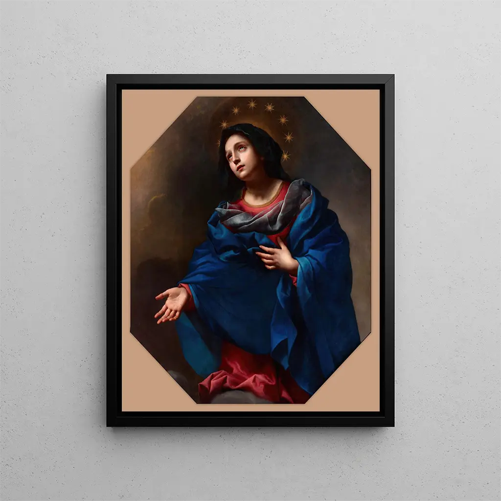 Reproduction Madone en gloire - Carlo Dolci – Introduction captivante Dans l'univers fascinant de l'art baroque, la "Madone en gloire" de Carlo Dolci se dresse comme une œuvre emblématique, captivant les regards et éveillant les âmes. Cette représentation de la Vierge Marie, entourée d'une luminosité divine, transcende le simple tableau pour devenir une véritable expérience spirituelle. L'artiste, par son talent incommensurable, parvient à capturer l'essence même de la foi et de la dévotion, offrant au spectateur une invitation à contempler la beauté du sacré. À travers cette reproduction, la magie de l'œuvre originale se révèle, permettant à chacun de s'immerger dans un monde où l'art et la spiritualité s'entrelacent harmonieusement. Style et singularité de l’œuvre La "Madone en gloire" est une ode à la beauté féminine et à la douceur maternelle. Dolci, maître du détail et de la couleur, utilise une palette délicate pour créer des nuances qui semblent vibrer sous la lumière. La composition, soigneusement orchestrée, met en avant la Vierge, dont le visage radieux exprime une sérénité infinie. Les drapés de sa robe, subtilement travaillés, évoquent une légèreté éthérée, tandis que l'arrière-plan, parsemé de nuages lumineux, renforce cette impression de transcendance. Chaque élément de l'œuvre est pensé pour susciter une émotion profonde, une connexion spirituelle avec le divin. La technique de Dolci, alliant précision et sensibilité, confère à cette pièce une singularité qui la distingue au sein de l'art baroque. L’artiste et son influence Carlo Dolci, né à Florence au XVIIe siècle, est un artiste qui a su s'imposer par son style unique et sa capacité à conjuguer la beauté et la spiritualité. Formé dans l'atelier des grands maîtres, il développe rapidement une approche personnelle, caractérisée par une attention minutieuse aux détails et une palette de couleurs raffinée. Son influence ne se limite pas à son époque, car ses œuvres continuent d'inspirer de nombreux artistes contemporains. À travers la "Madone en gloire", Dolci illustre non seulement son talent exceptionnel, mais également sa capacité à toucher l'âme humaine par l'art. Sa vision artistique fait de lui une figure incontournable du baroque, et son hérit