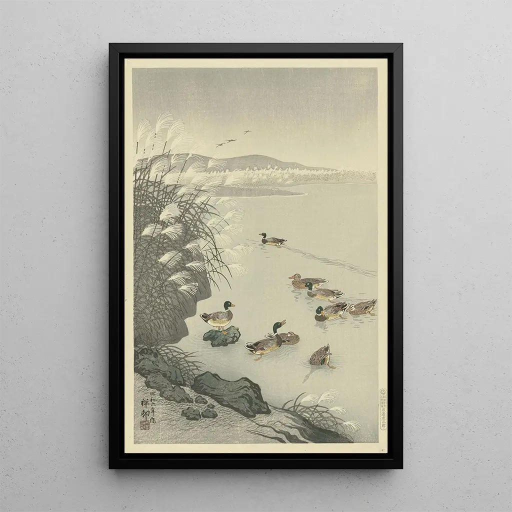 Canards dans l'eau : une sérénité aquatique L'œuvre "Canards dans l'eau" d'Ohara Koson évoque une scène paisible où des canards glissent doucement sur une surface miroitante. Les couleurs douces et naturelles, mêlant des nuances de bleu et de vert, créent une atmosphère apaisante. La technique de l'estampe sur papier, typique de l'ukiyo-e, permet à Koson de capturer la fluidité de l'eau et la grâce des oiseaux. Chaque détail, des plumes délicates aux reflets dans l'eau, témoigne d'une observation minutieuse de la nature, invitant le spectateur à s'immerger dans ce moment de tranquillité. Ohara Koson : un maître de l'ukiyo-e Ohara Koson, actif au début du XXe siècle, est reconnu pour ses estampes représentant la faune et la flore. Influencé par les traditions de l'ukiyo-e, il a su moderniser ce style tout en préservant son essence. Koson a été un des derniers artistes à se consacrer à cette forme d'art, et son travail reflète une profonde admiration pour la nature. Ses œuvres, souvent empreintes de poésie, capturent des instants fugaces, faisant de lui une figure importante dans l'histoire de l'art japonais. "Canards dans l'eau" s'inscrit parfaitement dans cette lignée, représentant à la fois une technique raffinée et une sensibilité artistique unique. Une acquisition décorative aux multiples atouts La reproduction "Canards dans l'eau" est une pièce décorative idéale pour apporter une touche de sérénité à votre intérieur. Que ce soit dans un salon, un bureau ou une chambre, ce tableau saura séduire par sa qualité et sa fidélité à l'œuvre originale. Son attrait esthétique, renforcé par des couleurs apaisantes, en fait un choix parfait pour créer une ambiance zen. En intégrant cette toile dans votre décoration, vous invitez non seulement la beauté de la nature chez vous, mais aussi un morceau de l'héritage artistique japonais, enrichissant ainsi votre espace de vie.