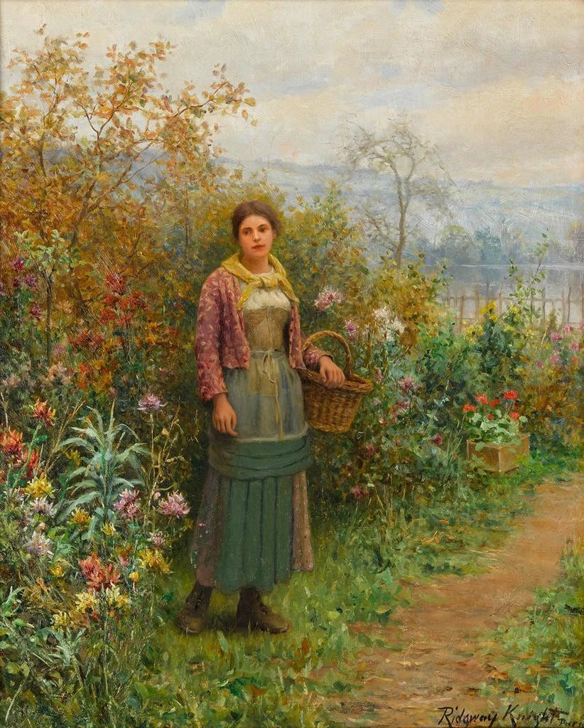 Reproduction Une pause d'un instant - Daniel Ridgway Knight – Introduction captivante Dans un monde où le rythme effréné de la vie moderne semble souvent étouffer les instants de sérénité, l'œuvre "Une pause d'un instant" de Daniel Ridgway Knight s'impose comme un havre de paix. Cette peinture, empreinte d'une délicatesse rare, nous transporte au cœur d'une scène bucolique où le temps semble suspendu. Le regard est immédiatement captivé par l'harmonie des couleurs et la douceur des formes, invitant le spectateur à s'arrêter et à contempler. À travers cette œuvre, Knight parvient à saisir l'essence même d'un moment fugace, une invitation à la réflexion et à l'évasion. Style et singularité de l’œuvre "Une pause d'un instant" se distingue par son style impressionniste qui transcende les simples représentations de la nature. Les coups de pinceau, à la fois légers et précis, créent un jeu subtil de lumière et d'ombre, apportant une profondeur inégalée à la scène. Les personnages, vêtus de robes délicates, semblent presque flotter dans cet espace verdoyant, où chaque détail, des feuilles des arbres aux reflets d'eau, est traité avec une minutie remarquable. Knight excelle dans la capture des émotions humaines, et dans cette œuvre, il réussit à évoquer une douce mélancolie, une nostalgie d'un temps révolu. La composition équilibrée et le choix des couleurs pastel renforcent cette atmosphère de tranquillité, faisant de cette peinture une œuvre à la fois apaisante et inspirante. L’artiste et son influence Daniel Ridgway Knight, figure emblématique de l'art américain du XIXe siècle, a su s'imposer dans le monde de la peinture grâce à son talent exceptionnel et à sa vision unique. Formé à l'École des Beaux-Arts de Paris, il a été influencé par les maîtres impressionnistes tout en développant son propre style distinctif. Son œuvre se caractérise par une attention particulière portée à la nature et à la vie rurale, reflétant son amour pour la simplicité et l'authenticité. Knight a également été un pionnier dans la représentation des femmes dans des scènes de la vie quotidienne, offrant une perspective nouvelle sur leur rôle dans la société. Sa capacité à fusionner la beauté du paysage avec des moments d'intimité humaine a laissé une empreinte indéléb