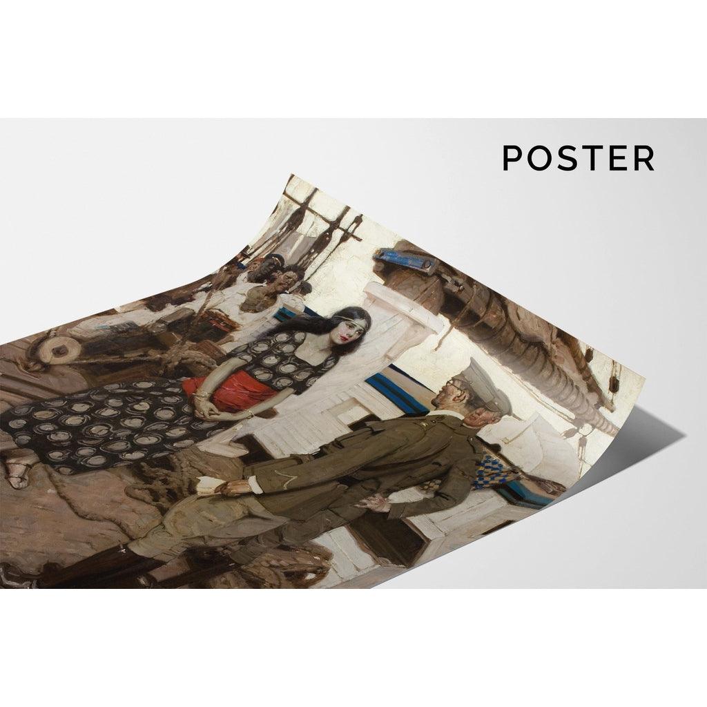 Avec un usage innovant du cubisme, Never the Twain Shall Meet ne se contente pas d'être visuellement captivant ; il raconte également une histoire. La composition audacieuse et les teintes vibrantes créent une atmosphère dynamique qui attire immédiatement le regard. Chaque détail de cette œuvre témoigne du génie de Dean Cornwell, capable de fusionner tradition et modernité.