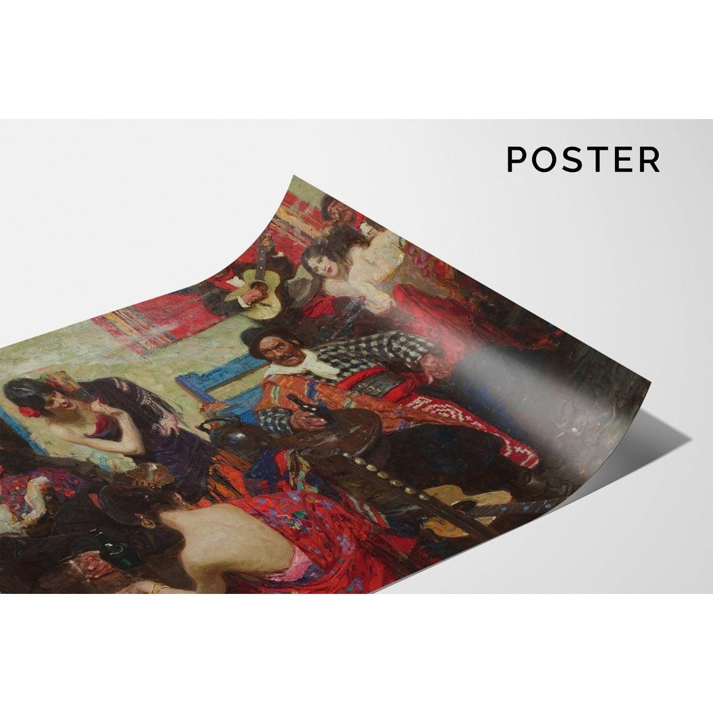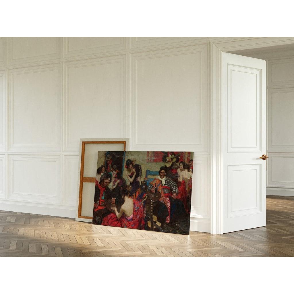 La création de Spanish Tavern s'est déroulée à une époque où l'art subissait des transformations majeures. Dean Cornwell, artiste reconnu pour son approche novatrice, a utilisé une palette subtile qui joue sur les nuances et les ombres. Chaque coup de pinceau raconte une histoire, plongeant le spectateur dans une époque révolue, pleine de vie et de culture. La scène représente des personnages vibrants, immortalisés dans un moment de convivialité, incarnant l'esprit de la communauté espagnole.