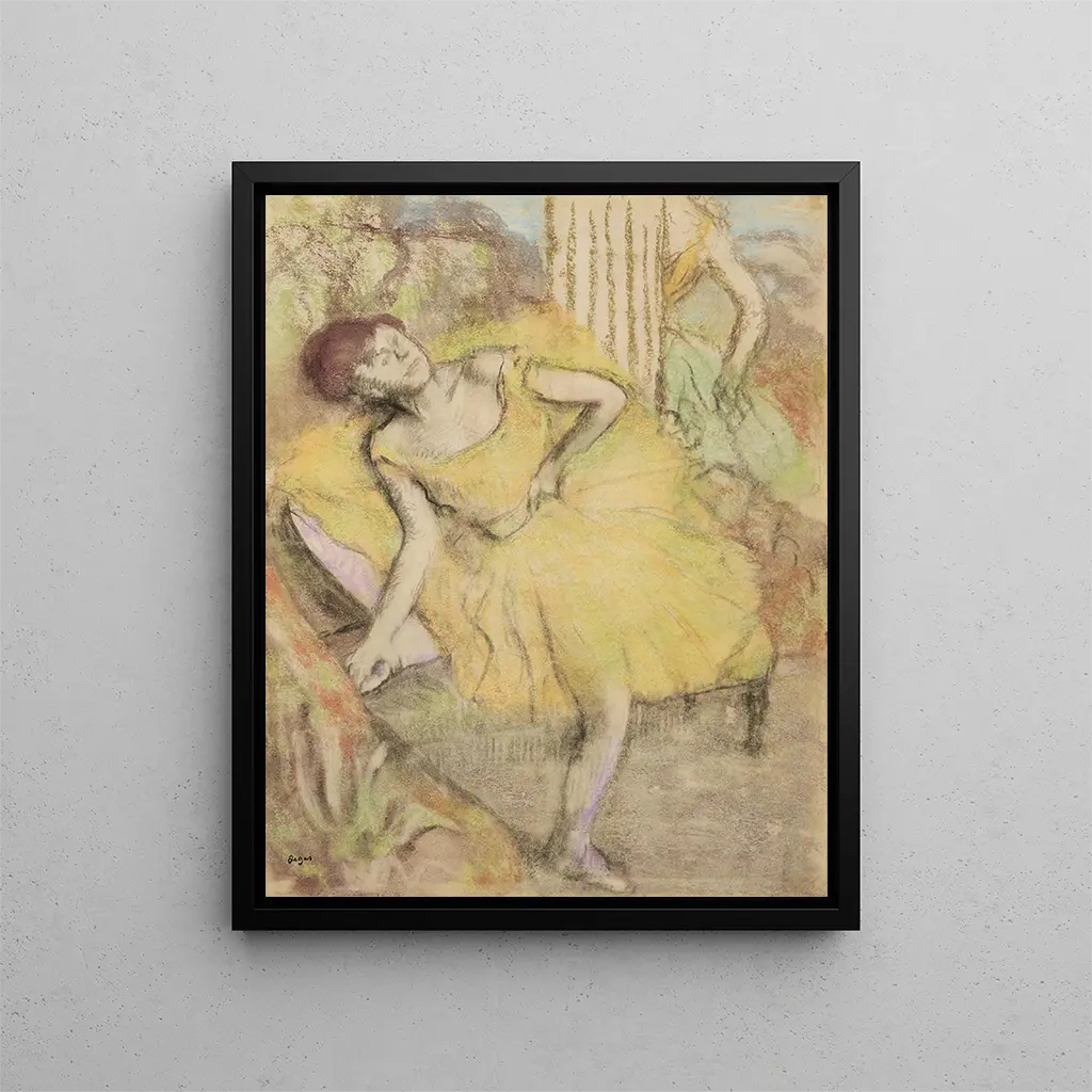 Reproduction Danseuse au repos - Edgar Degas – Introduction captivante Dans le monde fascinant de l'art, certaines œuvres transcendent le temps et l'espace, captivant l'imagination des générations successives. "Danseuse au repos" d'Edgar Degas est l'une de ces pièces emblématiques, révélant non seulement la beauté du mouvement, mais aussi la profondeur de l'émotion humaine. Cette œuvre, qui capture un moment de pause dans la vie d'une danseuse, évoque une intimité et une délicatesse qui invitent à la contemplation. À travers cette représentation, Degas nous plonge dans l'univers feutré des coulisses du ballet, où la grâce et l'effort se mêlent dans une harmonie subtile. La reproduction de cette œuvre permet de redécouvrir la magie de l'art impressionniste, tout en offrant une fenêtre sur l'âme d'un artiste dont le regard novateur a profondément marqué son époque. Style et singularité de l’œuvre La singularité de "Danseuse au repos" réside dans la manière dont Degas parvient à capturer le mouvement et la posture d'une danseuse tout en mettant en avant la dimension psychologique de son sujet. L'artiste utilise des angles audacieux et des compositions inattendues qui témoignent de son intérêt pour la dynamique corporelle. La danseuse, assise, semble à la fois vulnérable et forte, incarnant une dualité qui fait écho à la nature même de l'art de la danse. Les couleurs chaudes et les jeux de lumière créent une atmosphère intimiste, tandis que les détails délicats de la tenue de la danseuse soulignent le raffinement de son art. La technique de pastel, privilégiée par Degas, permet d'obtenir des textures douces et des nuances subtiles, rendant la scène encore plus vivante. En s'éloignant des conventions académiques, Degas offre une vision moderne et émotive de la danse, qui continue d'inspirer artistes et amateurs d'art à travers le monde. L’artiste et son influence Edgar Degas, figure majeure du mouvement impressionniste, a su s'imposer par son approche unique et sa capacité à capturer l'essence de la vie moderne. Né en 1834 à Paris, il a développé un intérêt particulier pour la danse, un sujet récurrent dans son œuvre. Sa fascination pour les ballerines n'était pas seulement esthétique; elle reflétait aussi son exploration des thèmes de la