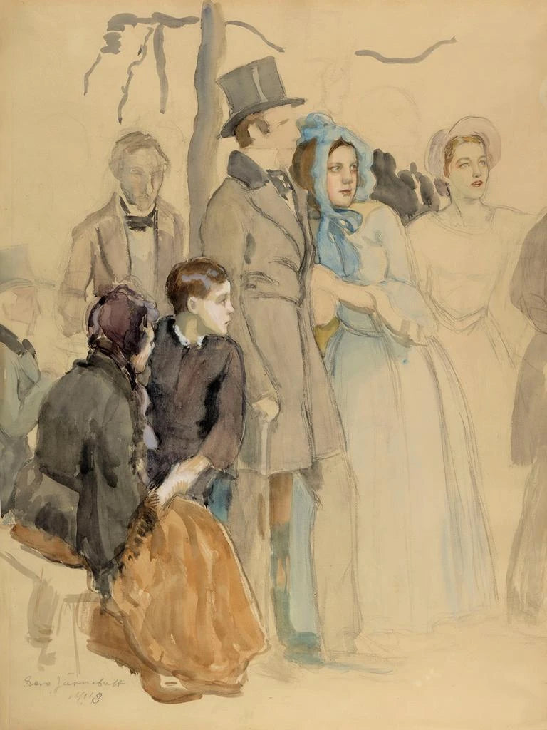 Eero Järnefelt, figure majeure de l'art finlandais, a su s'imposer par son approche unique qui allie réalisme et impressionnisme. Formé à l'Académie des beaux-arts de Saint-Pétersbourg, il a été influencé par des maîtres tels que Claude Monet et Pierre-Auguste Renoir, tout en restant profondément ancré dans sa culture nordique. Järnefelt a joué un rôle essentiel dans le développement de l'identité artistique finlandaise, mettant en avant les paysages et les traditions de son pays. Son œuvre, "Florajuhla Kumthden kentällä", est emblématique de cette quête d'identité, illustrant non seulement la beauté de la nature finlandaise, mais aussi la richesse de son folklore. L'influence de Jär