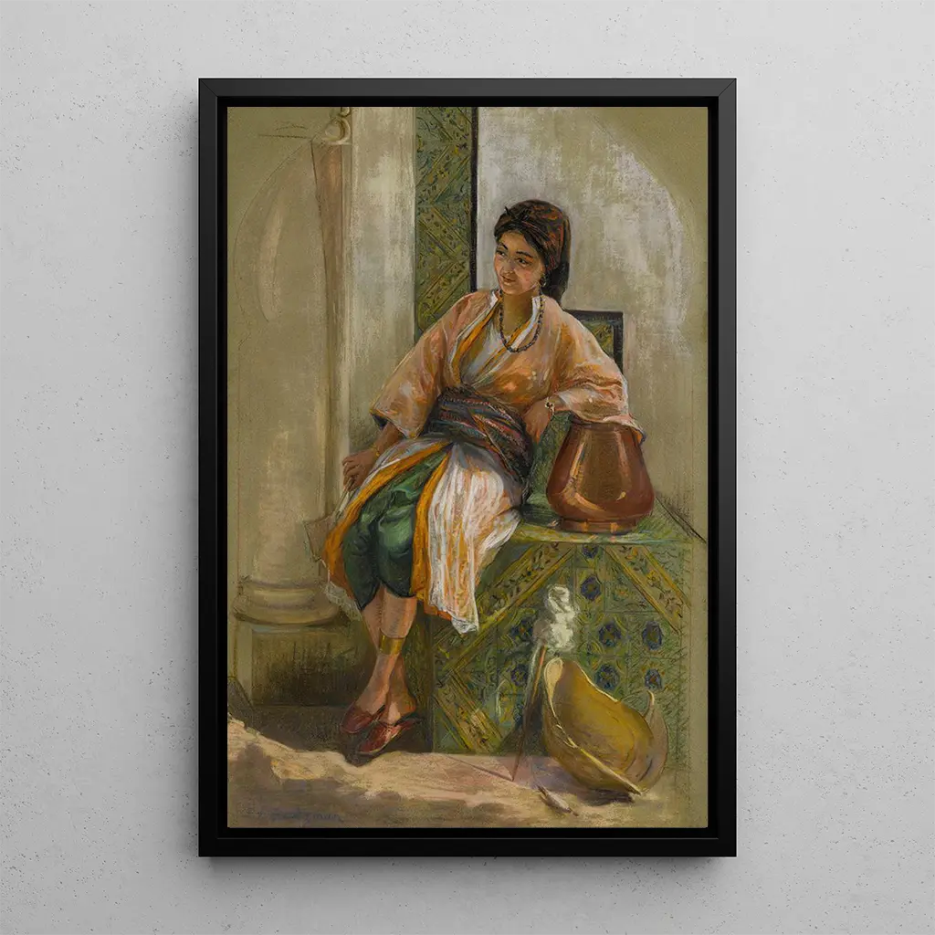 Frederick Arthur Bridgman, actif à la fin du XIXe siècle, est un peintre américain dont l'œuvre est profondément marquée par l'Orientalisme. Influencé par ses voyages en Afrique du Nord et au Moyen-Orient, il a su traduire la beauté des cultures orientales à travers ses toiles. Son style, qui allie des éléments réalistes à des touches impressionnistes, lui a permis de se démarquer dans le milieu artistique de son époque. "Jeune fille à l'éventail" est un parfait exemple de son talent à capturer l'essence de ses sujets tout en intégrant des éléments de rêve et de mystère, faisant de lui un acteur majeur de ce mouvement artistique.