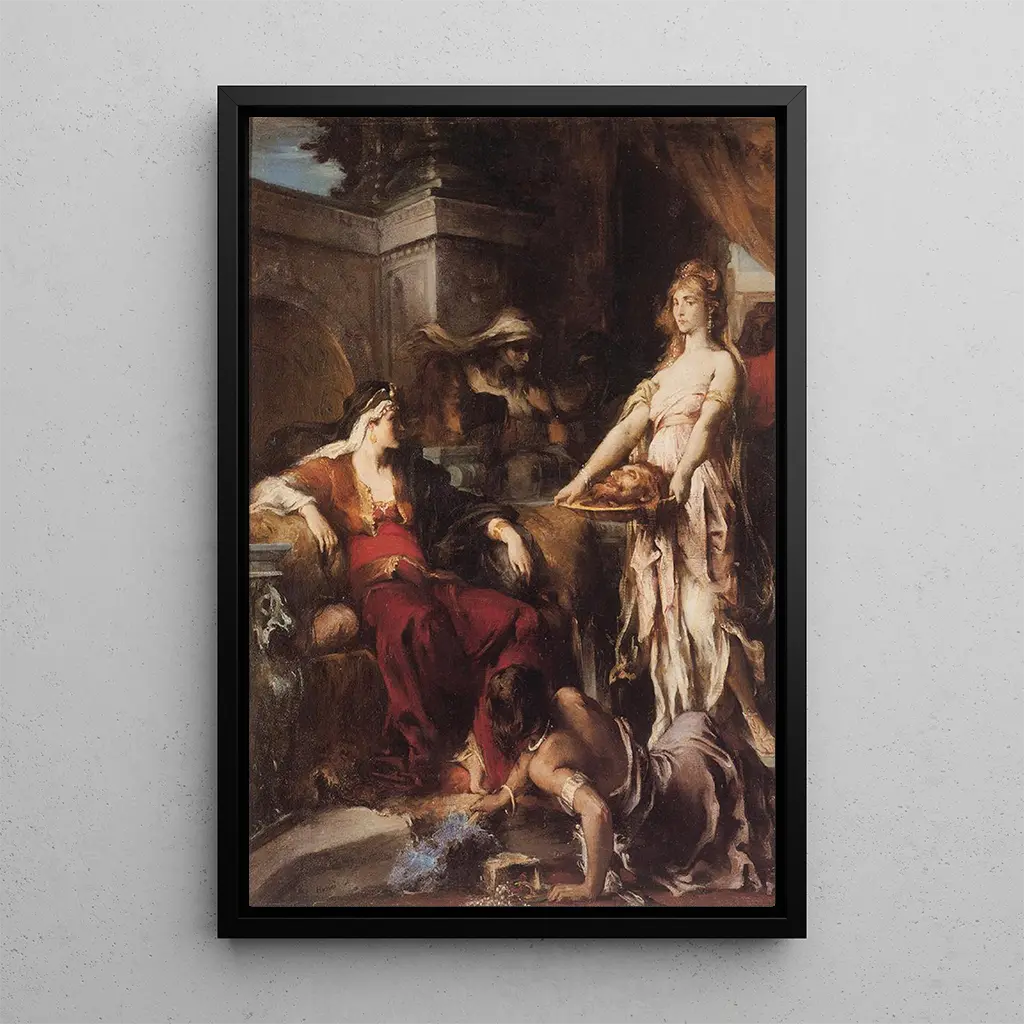 La reproduction de Hérodiade, œuvre emblématique d'Henri Léopold Lévy, nous plonge dans un univers où la passion et le drame se rencontrent. La composition, riche en détails, met en scène la célèbre figure d'Hérodiade, entourée d'une atmosphère à la fois sombre et captivante. Les couleurs, allant des rouges profonds aux ors éclatants, créent un contraste saisissant qui attire le regard et invite à la contemplation. La technique de Lévy, mêlant réalisme et touches impressionnistes, donne vie aux personnages, rendant palpable l'émotion qui émane de cette scène historique.