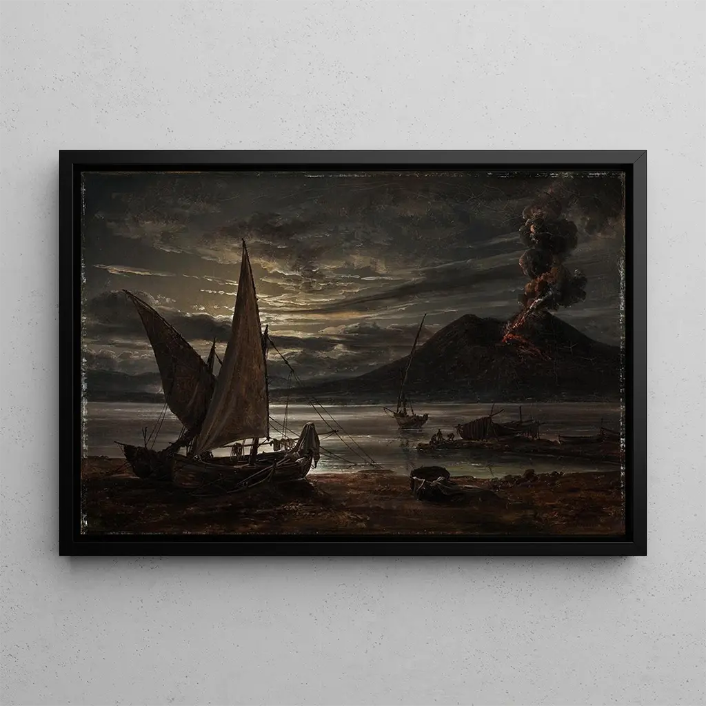 Éruption du Vésuve au clair de lune : une danse entre ombre et lumière L'œuvre "Éruption du Vésuve au clair de lune" nous plonge dans une atmosphère envoûtante où le volcan, majestueux et menaçant, se dresse sous un ciel nocturne illuminé par la lune. Les couleurs sombres et profondes de la toile contrastent avec les éclats lumineux des coulées de lave, créant une tension palpable. La technique de l'artiste, mêlant habilement le clair-obscur, accentue la puissance de la nature tout en évoquant une certaine sérénité. Cette scène dramatique, à la fois fascinante et terrifiante, invite le spectateur à contempler la beauté sauvage et indomptable du Vésuve, tout en ressentant l'angoisse d'une éruption imminente. Vesuvius In Eruption Moonlight : un maître du romantisme Vesuvius In Eruption Moonlight est un artiste emblématique du mouvement romantique, connu pour sa capacité à capturer les forces de la nature avec une intensité émotionnelle rare. Actif au XIXe siècle, il s'inspire des paysages italiens, en particulier des volcans, pour exprimer les passions humaines face à la grandeur du monde naturel. Influencé par des contemporains tels que Turner et Constable, il développe un style unique qui allie réalisme et expressionnisme. Ses œuvres, souvent teintées de mystère, reflètent les préoccupations de son époque, marquée par une fascination pour les phénomènes naturels et une quête de l'infini. Une acquisition décorative aux multiples atouts La reproduction de "Éruption du Vésuve au clair de lune" est une pièce décorative qui saura enrichir votre intérieur, qu'il s'agisse d'un salon, d'un bureau ou d'une chambre. Sa qualité d'impression fidèle et son attrait esthétique en font un choix idéal pour ceux qui souhaitent apporter une touche d'élégance et de caractère à leur espace. Ce tableau, avec son ambiance dramatique et poétique, suscite la curiosité et les conversations, tout en offrant une fenêtre sur la beauté sauvage de la nature. Opter pour cette toile, c'est choisir d'inviter l'art et la passion dans votre quotidien.