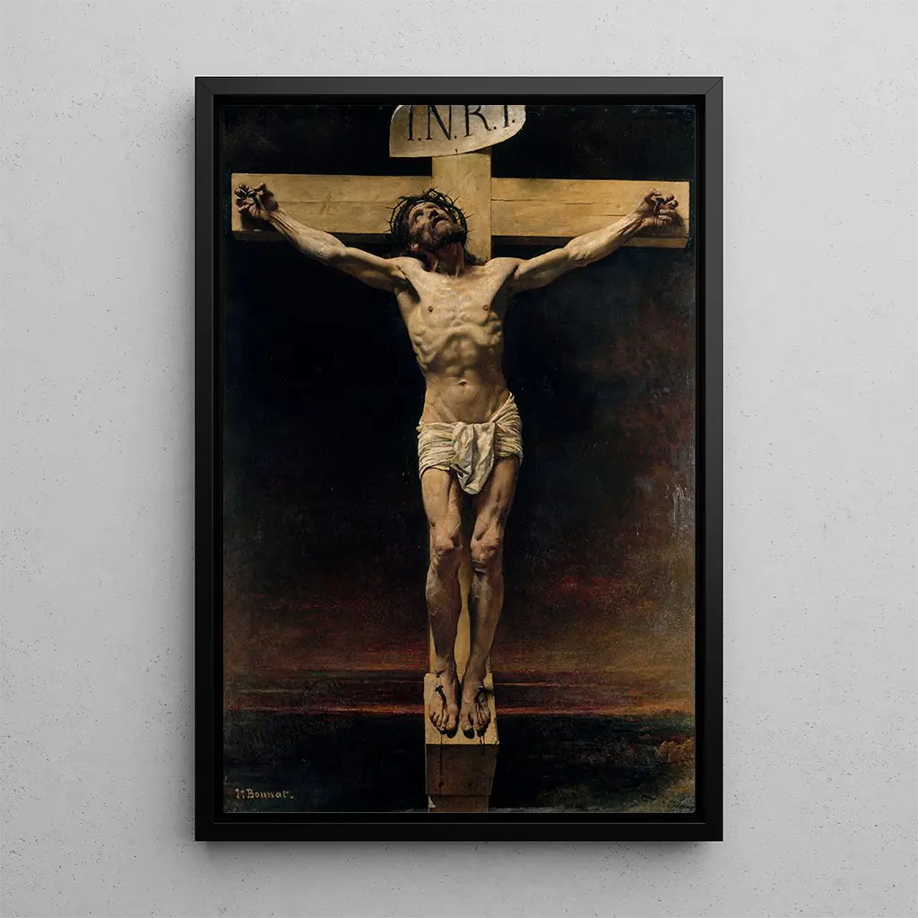 Le Christ en croix : une représentation poignante de la souffrance "Le Christ en croix" de Léon Bonnat est une œuvre qui saisit par sa profondeur émotionnelle et sa puissance visuelle. La composition, centrée sur la figure du Christ, évoque une atmosphère de douleur et de sacrifice. Les couleurs sombres et les ombres accentuent le drame de la scène, tandis que la technique de Bonnat, caractérisée par un réalisme saisissant, donne vie à chaque détail. Les expressions des personnages environnants, mêlant compassion et désespoir, renforcent l'impact de cette représentation, faisant de cette toile une véritable méditation sur la souffrance humaine et la rédemption. Léon Bonnat : un artiste engagé dans la représentation de l'humanité Léon Bonnat, figure emblématique du XIXe siècle, a su marquer son époque par des œuvres qui allient technique et émotion. Influencé par les maîtres anciens, il a développé un style qui mêle réalisme et idéalisation, lui permettant de traiter des thèmes profonds tels que la souffrance et la spiritualité. "Le Christ en croix" s'inscrit dans une période où l'art religieux revêt une importance particulière, reflétant les préoccupations spirituelles de son temps. À travers cette œuvre, Bonnat témoigne de son engagement envers des sujets qui touchent à l'essence même de l'humanité. Une acquisition décorative aux multiples atouts La reproduction de "Le Christ en croix" est une pièce maîtresse qui saura enrichir votre décoration intérieure. Que ce soit dans un espace de méditation, un bureau ou un salon, cette toile apportera une dimension spirituelle et contemplative à votre environnement. Sa qualité de reproduction garantit une fidélité aux nuances et aux détails de l'œuvre originale, permettant de ressentir toute la force de son message. Avec son attrait esthétique, cette œuvre devient un élément de conversation captivant, invitant à la réflexion et à l'échange autour de la foi et de la condition humaine.