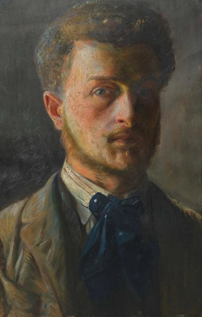 Autoportrait d'Oskar Strnad en étudiant : une introspection artistique