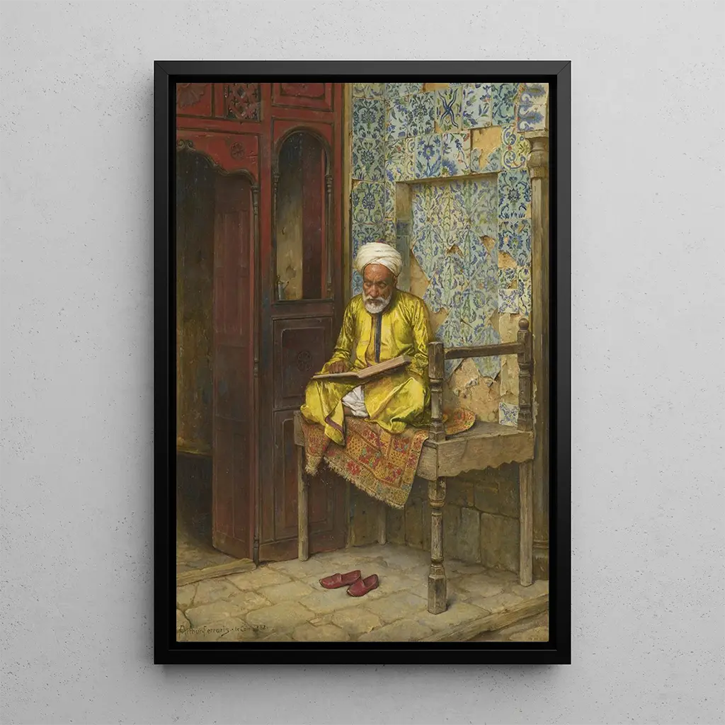 L'homme savant du Caire : un portrait de sagesse et de curiosité Dans "L'homme savant du Caire", Arthur von Ferraris capture l'essence d'un intellectuel plongé dans la réflexion. La composition met en avant un personnage central, habillé de manière traditionnelle, entouré de livres et d'instruments scientifiques, symboles d'un savoir ancien et précieux. Les couleurs chaudes et terreuses évoquent l'atmosphère riche et vibrante de la culture égyptienne, tandis que les détails minutieux témoignent de la maîtrise technique de l'artiste. Ce tableau invite à une contemplation profonde, où chaque élément raconte une histoire de quête de connaissance et de sagesse. Arthur von Ferraris : un voyage à travers l'Orient Arthur von Ferraris, peintre du XIXe siècle, est connu pour ses œuvres qui explorent les thèmes de l'Orientalisme. Influencé par ses voyages en Égypte et au Moyen-Orient, il s'inspire des paysages, des cultures et des traditions locales. Son style se caractérise par une attention particulière aux détails et une palette de couleurs riche, qui capturent la lumière et l'atmosphère des lieux qu'il représente. "L'homme savant du Caire" s'inscrit dans une période où l'Occident s'intéresse de plus en plus aux cultures orientales, et l'œuvre de Ferraris témoigne de cette fascination, tout en offrant une réflexion sur l'importance du savoir. Une acquisition décorative aux multiples atouts La reproduction de "L'homme savant du Caire" constitue un ajout élégant à toute décoration intérieure, que ce soit dans un salon, un bureau ou une chambre. Son attrait esthétique et son message profond en font un tableau captivant qui suscite la curiosité et l'admiration. La qualité de la reproduction garantit une fidélité aux détails et aux couleurs de l'œuvre originale, permettant de profiter pleinement de l'ambiance qu'elle dégage. En choisissant cette toile, vous optez pour une pièce décorative qui enrichit votre espace tout en célébrant l'héritage culturel et intellectuel de l'Égypte.