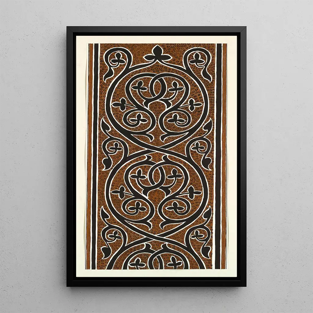 L'ornement byzantin, réalisé par Elizabeth A Nedwill, est une œuvre qui évoque la richesse et la complexité de l'art byzantin. Les motifs dorés et les détails minutieux créent une atmosphère de majesté et de sérénité. Chaque élément, qu'il soit floral ou géométrique, est soigneusement agencé pour former un tout harmonieux, reflétant la spiritualité et la grandeur de l'époque. La technique de l'artiste, alliant peinture et dorure, donne à cette œuvre une luminosité unique, captivant ainsi le regard des amateurs d'art.