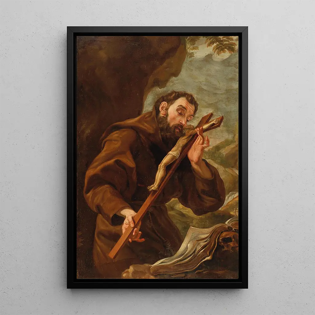 L'École de Rome, active principalement au XVIIe siècle, est reconnue pour ses contributions majeures au mouvement baroque. Les artistes de cette époque, influencés par les traditions classiques et les innovations du Caravage, ont su allier émotion et technique. Saint François d'Assise, figure emblématique de l'humilité et de l'amour de la nature, a inspiré de nombreux artistes. Cette reproduction témoigne de l'importance de sa figure dans l'art religieux, tout en illustrant la richesse stylistique de l'École de Rome, qui a su capturer l'essence même de la spiritualité chrétienne.