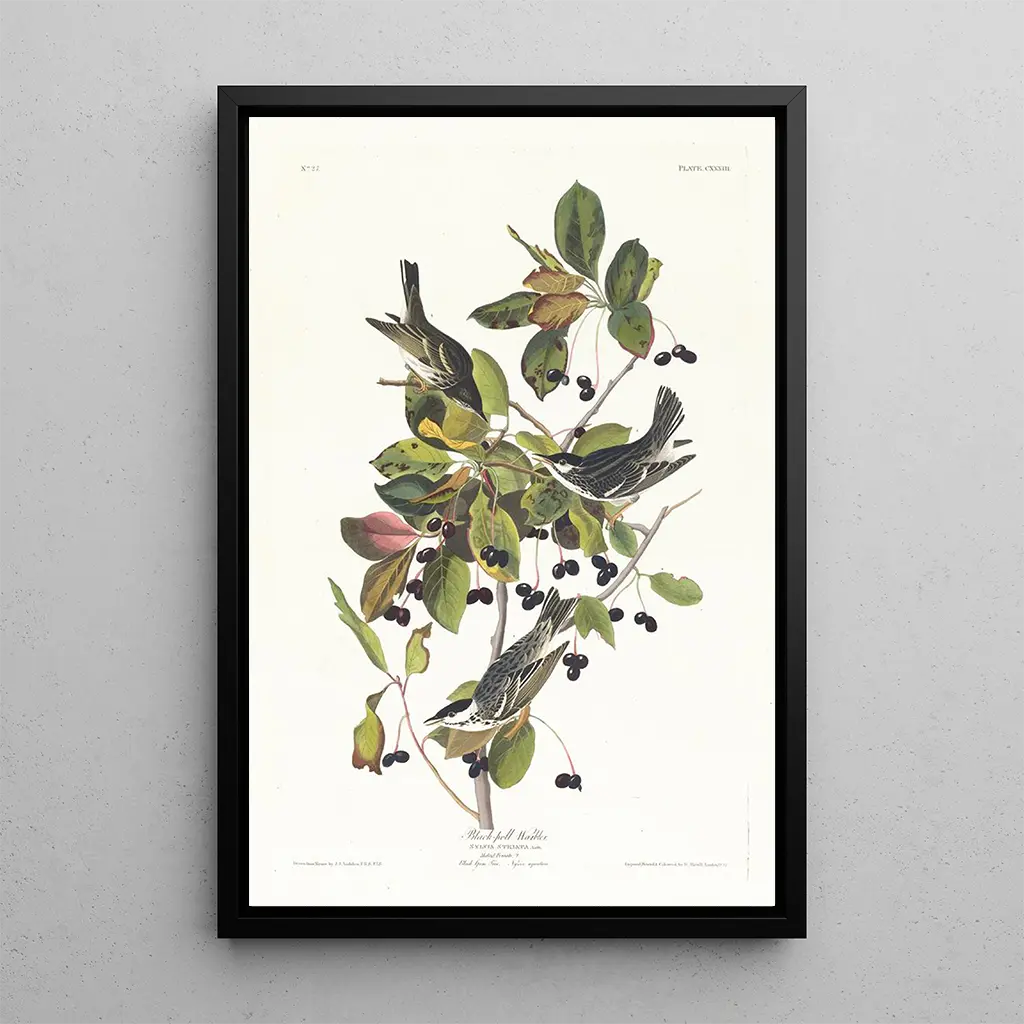 John James Audubon, naturaliste et peintre du début du XIXe siècle, est reconnu pour son œuvre monumentale sur les oiseaux d'Amérique. Né en Haïti, il a été influencé par les paysages luxuriants de son enfance et par sa passion pour la nature. Audubon a su allier art et science, capturant la diversité aviaire avec une précision remarquable. Son style, à la fois réaliste et poétique, a marqué son époque et continue d’inspirer les artistes et les naturalistes. La Paruline rayée est l’un des nombreux exemples de son engagement à documenter la faune américaine, faisant de lui une figure emblématique de l'art naturaliste.