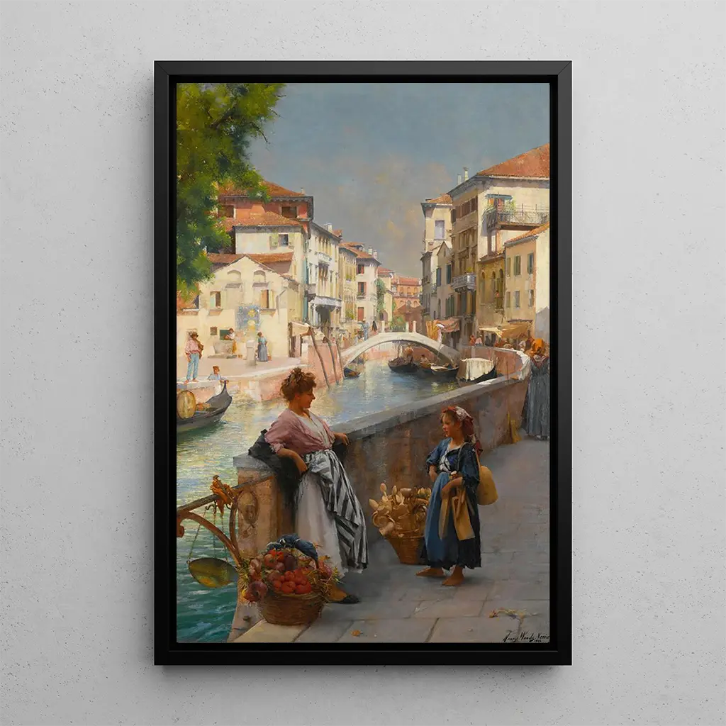 San Trovaso Venise : un tableau vibrant de vie et de lumière La reproduction de San Trovaso, œuvre emblématique d'Henry Woods, nous transporte au cœur de Venise, où les reflets dans l'eau et les couleurs chatoyantes des façades créent une atmosphère envoûtante. La technique de l'artiste, mêlant huile et pinceau délicat, donne vie à cette scène animée, où gondoles et passants se côtoient dans une harmonie parfaite. Les nuances de bleu et d'ocre s'entrelacent pour évoquer la magie de cette ville flottante, tandis que la lumière joue sur les surfaces, accentuant la profondeur et la texture de chaque élément. Ce tableau est une véritable invitation à la contemplation, un moment suspendu dans le temps. Henry Woods : un maître du paysage britannique Henry Woods, peintre britannique du XIXe siècle, est reconnu pour ses paysages et scènes de la vie quotidienne, souvent baignés de lumière naturelle. Influencé par le mouvement impressionniste, il a su capturer l'essence des lieux qu'il peignait, notamment lors de ses voyages en Europe. Sa carrière, marquée par une exploration constante des effets de la lumière, a fait de lui un artiste respecté dans le milieu artistique de son époque. Les œuvres de Woods, dont San Trovaso, témoignent d'une sensibilité unique à la beauté des paysages urbains, tout en intégrant des éléments de la vie moderne, ce qui lui confère une place importante dans l'histoire de l'art. Une acquisition décorative aux multiples atouts La reproduction de San Trovaso est une pièce décorative idéale pour enrichir votre intérieur, que ce soit dans un salon, un bureau ou une chambre. Sa qualité d'impression et sa fidélité aux couleurs originales en font un choix attrayant pour les amateurs d'art et les passionnés de Venise. Ce tableau, avec son ambiance vivante et chaleureuse, saura apporter une touche d'élégance et de caractère à votre décoration. En choisissant cette toile, vous optez pour une œuvre qui non seulement embellit votre espace, mais évoque également des souvenirs de voyages et d'évasion, créant ainsi une atmosphère accueillante et inspirante.