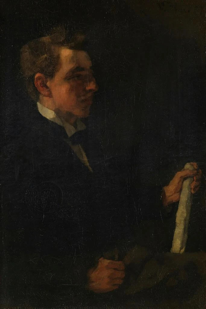Dans cette œuvre captivante, Wilhelm Trübner nous plonge dans l'univers d'un étudiant en art, absorbé par son rouleau de papier. La composition met en avant des couleurs douces et des nuances délicates, créant une atmosphère de sérénité et de concentration. La lumière joue un rôle essentiel, illuminant subtilement le visage du jeune homme tout en laissant des ombres mystérieuses envelopper l'arrière-plan. La technique de Trübner, qui mêle réalisme et impressionnisme, invite le spectateur à ressentir l'intensité de ce moment d'étude, où l'art et la réflexion se rencontrent.