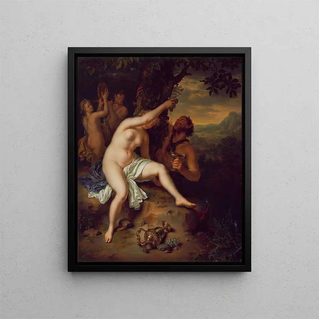 Le style de Willem van Mieris se caractérise par une maîtrise exceptionnelle des détails et une palette de couleurs raffinée. Dans "Scène bachique", chaque élément est traité avec une minutie qui témoigne de l'habileté de l'artiste. Les visages des personnages, expressifs et vivants, capturent l'essence même de l'euphorie bachique. Les jeux de lumière et d'ombre, savamment orchestrés, confèrent à la scène une profondeur saisissante, plongeant le spectateur dans un univers à la fois intime et festif. La composition, équilibrée et harmonieuse, invite à la contemplation, chaque regard découvrant un nouveau détail, une nouvelle interaction entre les personnages. La richesse des textures, qu'il s'agisse des drapés des vêtements ou des éléments naturels, renforce l'impression de réalisme tout en préservant une certaine idéalisation propre à l'art baroque.