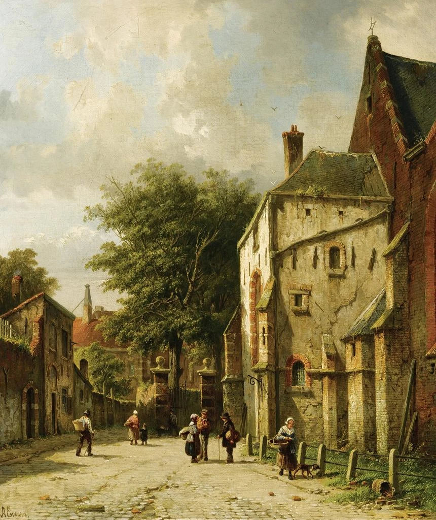 Reproduction | Une scène de rue dans une ville néerlandaise - Adrianus Eversen