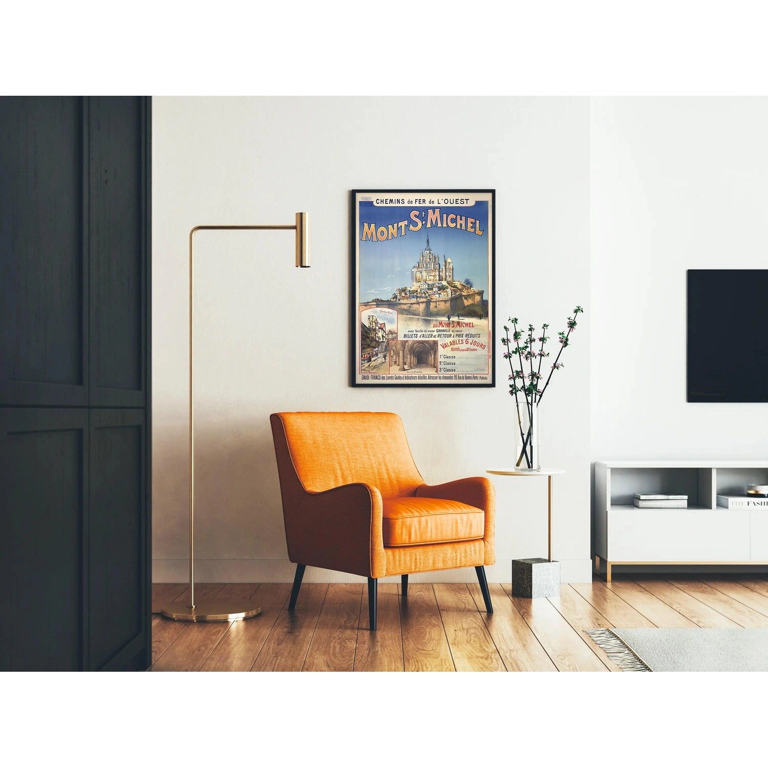 Cette affiche Mont-Saint-Michel vintage reflète l’âge d’or des affiches ferroviaires. Grâce à son illustration détaillée, ses couleurs franches et sa composition informative, elle évoque à la fois le prestige de la destination et la modernité des moyens de transport de l’époque.