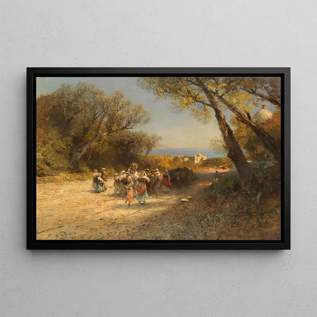 Après le travail des champs : une ode à la vie rurale L'œuvre "Après le travail des champs" évoque avec tendresse la simplicité et la beauté du quotidien rural. Les couleurs chaudes, allant des ocres aux verts profonds, créent une atmosphère apaisante, tandis que la lumière douce du crépuscule enveloppe la scène d'une aura presque magique. La technique utilisée, probablement à l'huile, permet de capturer les détails des visages fatigués mais sereins des travailleurs, ainsi que la texture des champs fraîchement labourés. Cette toile invite le spectateur à une contemplation silencieuse, à ressentir la fatigue mais aussi la satisfaction du travail accompli. Nach der Feldarbeit : un témoin de l'art paysager Nach der Feldarbeit, bien que moins connu que certains de ses contemporains, s'inscrit dans une tradition artistique qui célèbre la nature et la vie rurale. Actif au XIXe siècle, cet artiste a été influencé par le mouvement romantique, qui valorisait l'émotion et la beauté des paysages naturels. Son œuvre reflète une époque où l'industrialisation commençait à transformer le paysage européen, et où les artistes cherchaient à préserver la mémoire des modes de vie traditionnels. À travers ses tableaux, il nous rappelle l'importance de la connexion entre l'homme et la terre, une thématique toujours d'actualité. Une acquisition décorative aux multiples atouts La reproduction "Après le travail des champs" constitue un choix décoratif idéal pour divers espaces de vie, qu'il s'agisse d'un salon chaleureux, d'un bureau inspirant ou d'une chambre apaisante. Sa qualité d'impression fidèle et son attrait esthétique en font une pièce maîtresse qui attire le regard et suscite des conversations. En intégrant ce tableau dans votre décoration, vous apportez une touche d'authenticité et de sérénité à votre intérieur, tout en célébrant la beauté du travail artisanal et la vie à la campagne.