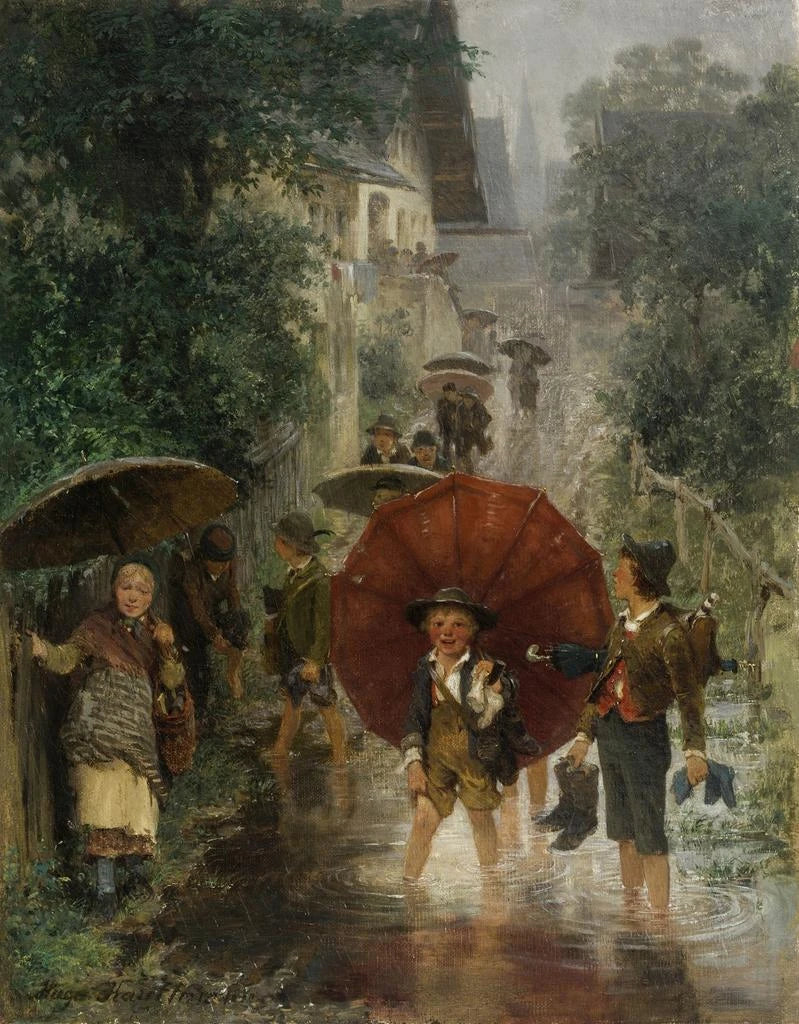 Après l'école, les enfants sous la pluie - Hugo Kauffmann