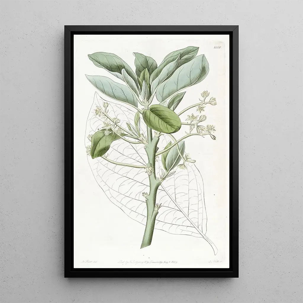 L'œuvre "L'avocatier" de Sydenham Edwards nous plonge dans un univers botanique riche et vibrant. Cette reproduction met en avant la beauté des feuilles vertes et l'élégance des fruits, capturant la lumière d'une manière qui évoque la chaleur des tropiques. Les détails minutieux de chaque feuille et la texture du fruit sont rendus avec une précision remarquable, témoignant de l'habileté de l'artiste. L'atmosphère générale de la toile est à la fois apaisante et inspirante, invitant le spectateur à apprécier la magnificence de la nature.