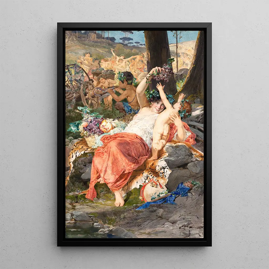 Bacchante : une célébration de la vie et de la nature Dans cette œuvre vibrante, Julius Kronberg nous plonge au cœur d'une scène empreinte de sensualité et de mouvement. La Bacchante, figure mythologique, est représentée dans une danse effrénée, entourée de feuillages luxuriants et de fruits éclatants. Les couleurs chaudes et les jeux de lumière accentuent l'énergie de la composition, tandis que la technique de l'artiste, mêlant réalisme et éléments symboliques, crée une atmosphère envoûtante. Chaque détail, des drapés fluides aux expressions joyeuses, invite à une contemplation profonde de la beauté de la vie et de la nature. Julius Kronberg : un maître du romantisme suédois Né en 1850, Julius Kronberg est un peintre suédois dont le travail s'inscrit dans le courant du romantisme. Influencé par les grands maîtres de la peinture classique, il développe un style qui allie réalisme et idéalisation. Kronberg a passé une partie de sa carrière à Paris, où il a été en contact avec des artistes contemporains, enrichissant ainsi sa palette et ses thèmes. Ses œuvres, souvent inspirées de la mythologie et de l'histoire, témoignent d'une recherche constante de la beauté et de l'harmonie, faisant de lui une figure importante de l'art suédois du XIXe siècle. Une acquisition décorative aux multiples atouts La reproduction de Bacchante est une pièce décorative qui saura embellir n'importe quel espace, que ce soit un salon, un bureau ou une chambre. Sa qualité d'impression et la fidélité des couleurs rendent hommage à l'œuvre originale, tout en apportant une touche d'élégance et de dynamisme à votre intérieur. Avec son attrait esthétique indéniable, ce tableau invite à la rêverie et à l'évasion, faisant de chaque regard un moment de plaisir et d'inspiration. Offrez-vous cette toile pour enrichir votre décor et célébrer la beauté de l'art.