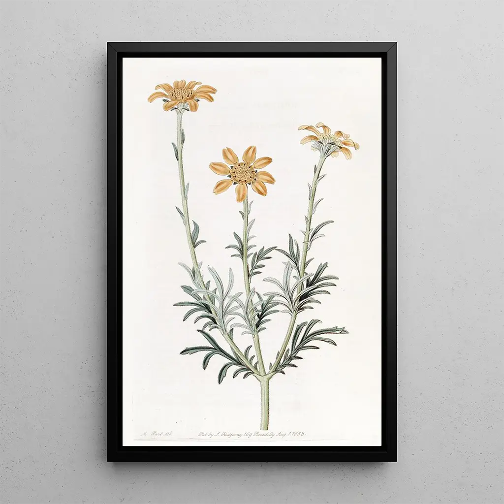 Baebera à branches dressées : une ode à la diversité florale. La reproduction de Baebera à branches dressées, réalisée par Sydenham Edwards, dévoile une composition florale riche et dynamique. Les couleurs vives et les formes élégantes des fleurs capturent l'œil et évoquent une sensation de vitalité. La technique de l’aquarelle, maîtrisée par Edwards, permet de rendre les nuances délicates et les ombres subtiles, créant ainsi une profondeur impressionnante. Cette œuvre, à la fois réaliste et poétique, invite à une exploration des merveilles de la nature, tout en célébrant la diversité des espèces végétales. Chaque détail est soigneusement élaboré, témoignant de l'amour de l'artiste pour la botanique. Sydenham Edwards : un artiste au carrefour de l'art et de la science. Sydenham Edwards, illustrateur botanique du XIXe siècle, a marqué son époque par ses œuvres alliant précision scientifique et sensibilité artistique. Influencé par les avancées de la botanique, il a su capturer l'essence des plantes avec une minutie remarquable. Edwards a collaboré avec des botanistes renommés, ce qui a contribué à la diffusion de ses illustrations dans des ouvrages scientifiques. Son style distinctif et son engagement envers la représentation fidèle des espèces font de lui une figure emblématique de l'illustration botanique, laissant un héritage durable dans le monde de l'art et de la science. Une acquisition décorative aux multiples atouts. La reproduction de Baebera à branches dressées est une pièce décorative qui s'intègre harmonieusement dans divers espaces, qu'il s'agisse d'un salon, d'un bureau ou d'une chambre. Sa qualité d'impression assure une fidélité aux couleurs vibrantes et aux détails raffinés de l'œuvre originale. Ce tableau apporte une touche de fraîcheur et de nature à votre intérieur, tout en suscitant l'admiration des visiteurs. En optant pour cette toile, vous choisissez une œuvre qui non seulement embellit votre espace, mais qui évoque également la beauté et la diversité du monde végétal.